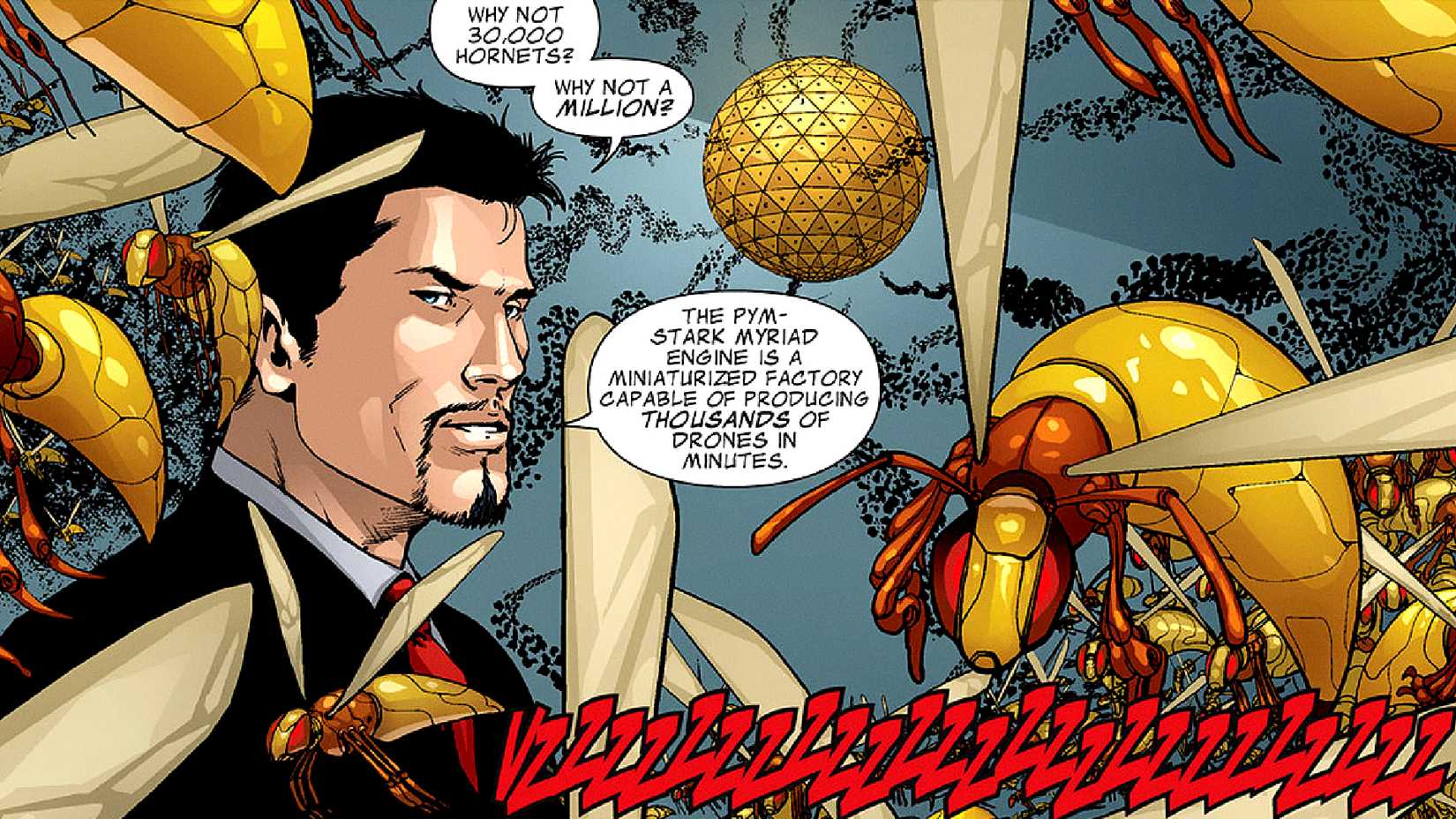 Позвольте мне рассказать вам об этом увлекательном технологическом новшестве, представленном в Captain America & Iron Man #633: Stark-Pym Myriad Engine. По сути, это крошечная фабрика, способная производить рои роботизированных, похожих на насекомых дронов – и они могут делать что угодно. Мы видим, как Человек-муравей использует их в бою, но изначальное видение Железного человека было на удивление альтруистичным. Он представлял себе, что эти дроны удобряют фермы и доставляют жизненно важные лекарства в нуждающиеся страны. Жаль, что это изобретение не взлетело. Очевидно, инвесторы были куда больше заинтересованы в превращении этих маленьких ботов в оружие, что, на мой взгляд, довольно циничное замечание.