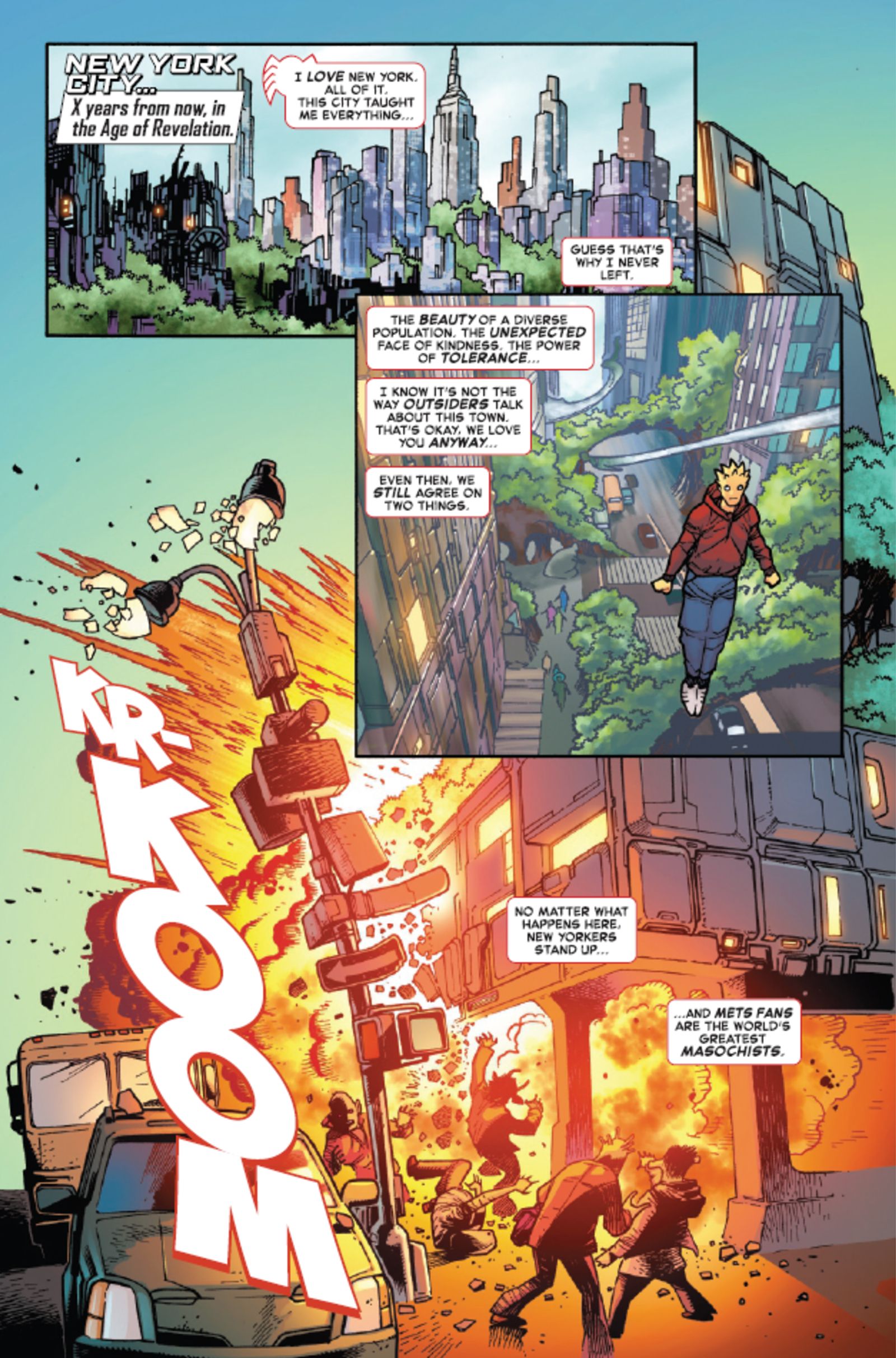 Окей, так как огромному фанату Людей Икс, ты, вероятно, уже слышал – Marvel делает эту масштабную сюжетную линию, которая мне очень напоминает Эпоху Апокалипсиса. По сути, все комиксы о Людях Икс заменяются ограниченными сериями, действие которых происходит в будущем, где этот новый злодей, Revelation, захватил большую часть Северной Америки. Revelation на самом деле очень интересен – раньше он был Дугом Рэмзи, членом Людей Икс, но теперь он намного сильнее. Он может понимать любого, и это расширилось до способности контролировать все, с чем он может общаться – людей, растения, все! Что круто, так это то, что Marvel не делает это только с комиксами о Людях Икс. Они также выпускают другие комиксы, действие которых происходит в том же будущем, и этот один из них.