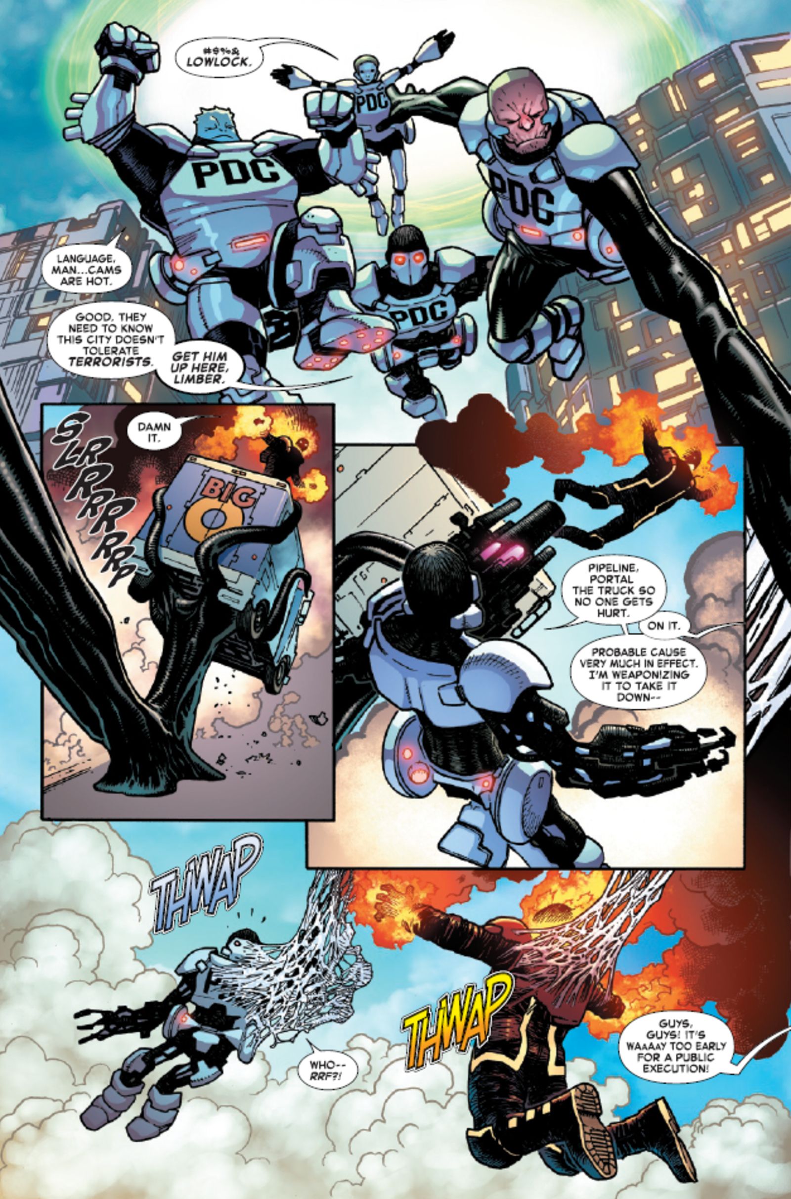 Итак, даже несмотря на то, что они сказали, что он ‘в основном’ нормальный, у этого парня все еще были довольно дикие мутации – например, дополнительная рука, растущая из его груди! Также здорово видеть, как Человек-паук и Сесилия действительно влюбляются друг в друга. Этот персонаж, Рейес, впервые появился в одной из последних историй X-Men от Скотта Лобделла в конце 90-х, а затем Джо Келли продолжил писать одну из книг X-Men сразу после этого. Из-за этого Келли знает Рейес уже давно, и мне очень нравится, как он пишет ее сейчас. Она очень практична, но не боится вступать в бой, когда это правильно, и ты можешь видеть, что она действительно уважает мужество Человека-паука.