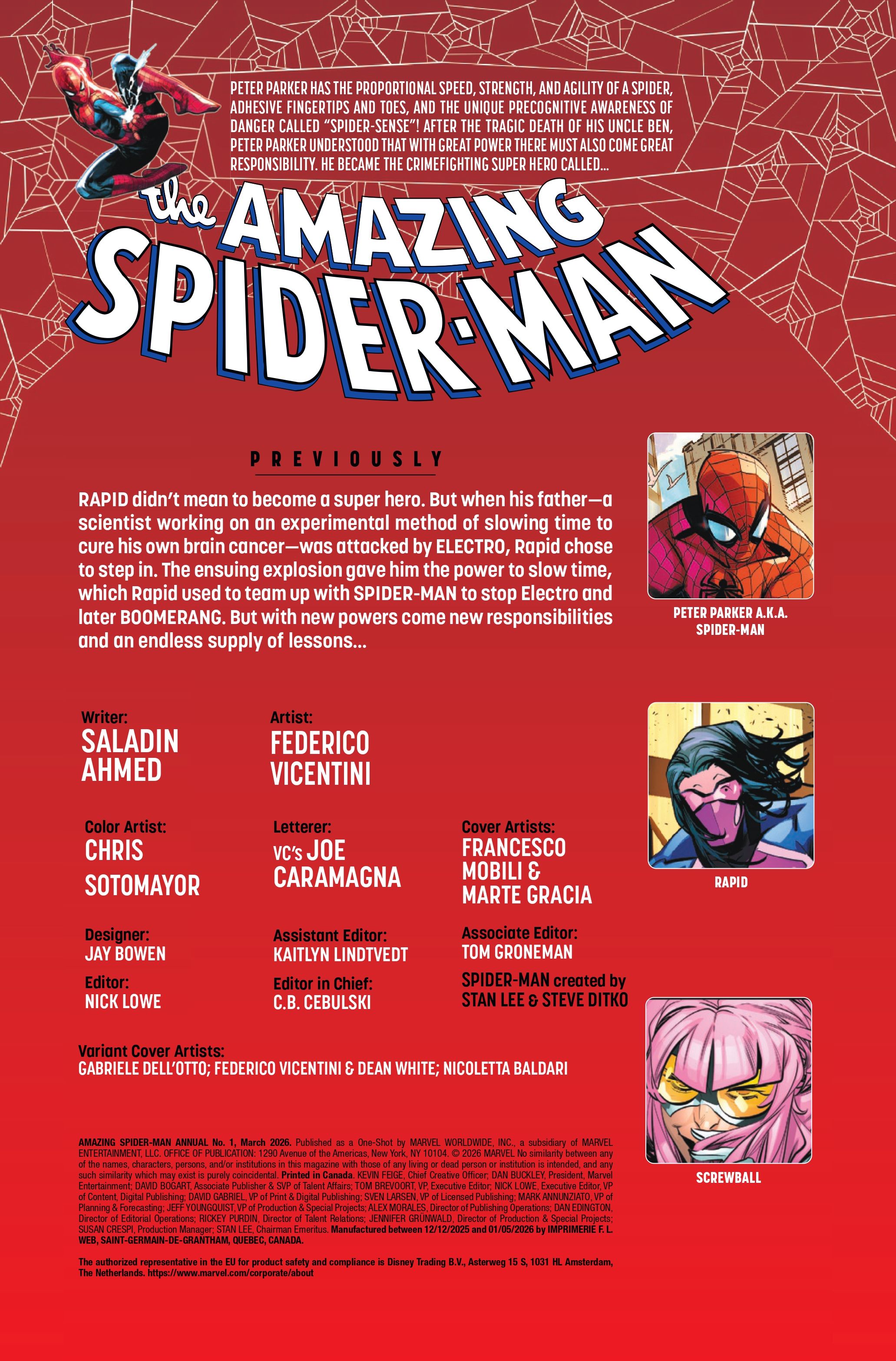 Открыть МультивселеннуюИтак, Здарски создал Rapid, но Саладин Ахмед был основным сценаристом для него с тех пор. Я видел, как Rapid появляется в нескольких интересных историях, таких как Amazing Spider-Man #975, и теперь он получает больше внимания в Amazing Spider-Man Annual #1. Ахмед пишет эту историю, а Федерико Винчетини отвечает за рисунок, Крис Сотомайор — за цвета, а Джо Карамагна — за леттеринг. История о том, как Человек-паук тренирует этого нового героя, Rapid, который может манипулировать временем – по сути, делая его супербыстрым!