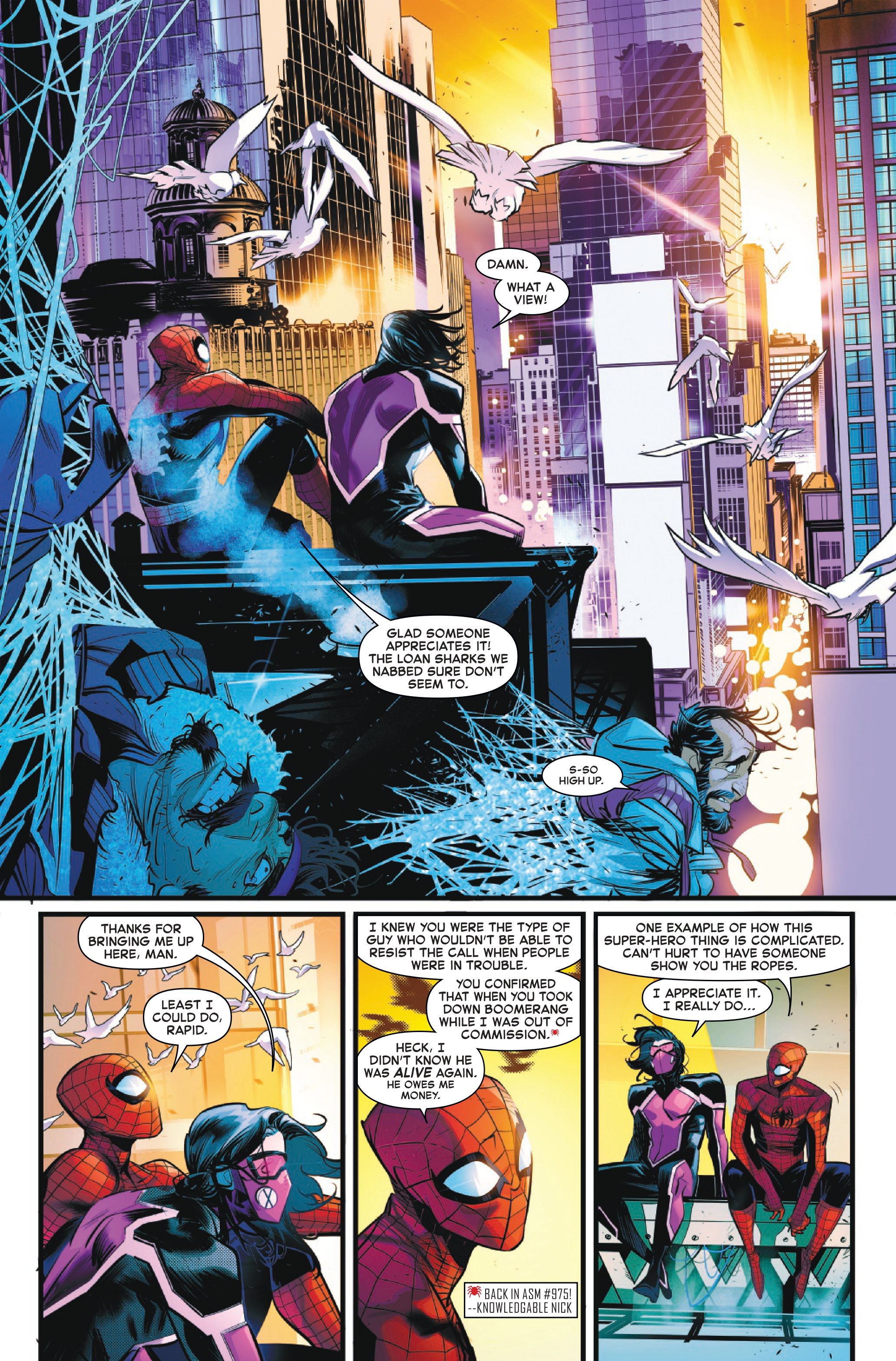 Превью показывает, как Человек-паук наставляет Рапида, нового героя. Пока неясно, когда именно происходит эта история. Питера Паркера в последний раз видели направляющимся обратно на Землю в Amazing Spider-Man #19, поэтому, вероятно, это происходит после его возвращения. Однако, это также могло произойти до того, как он отправился в космос, как это было показано в Amazing Spider-Man #8.