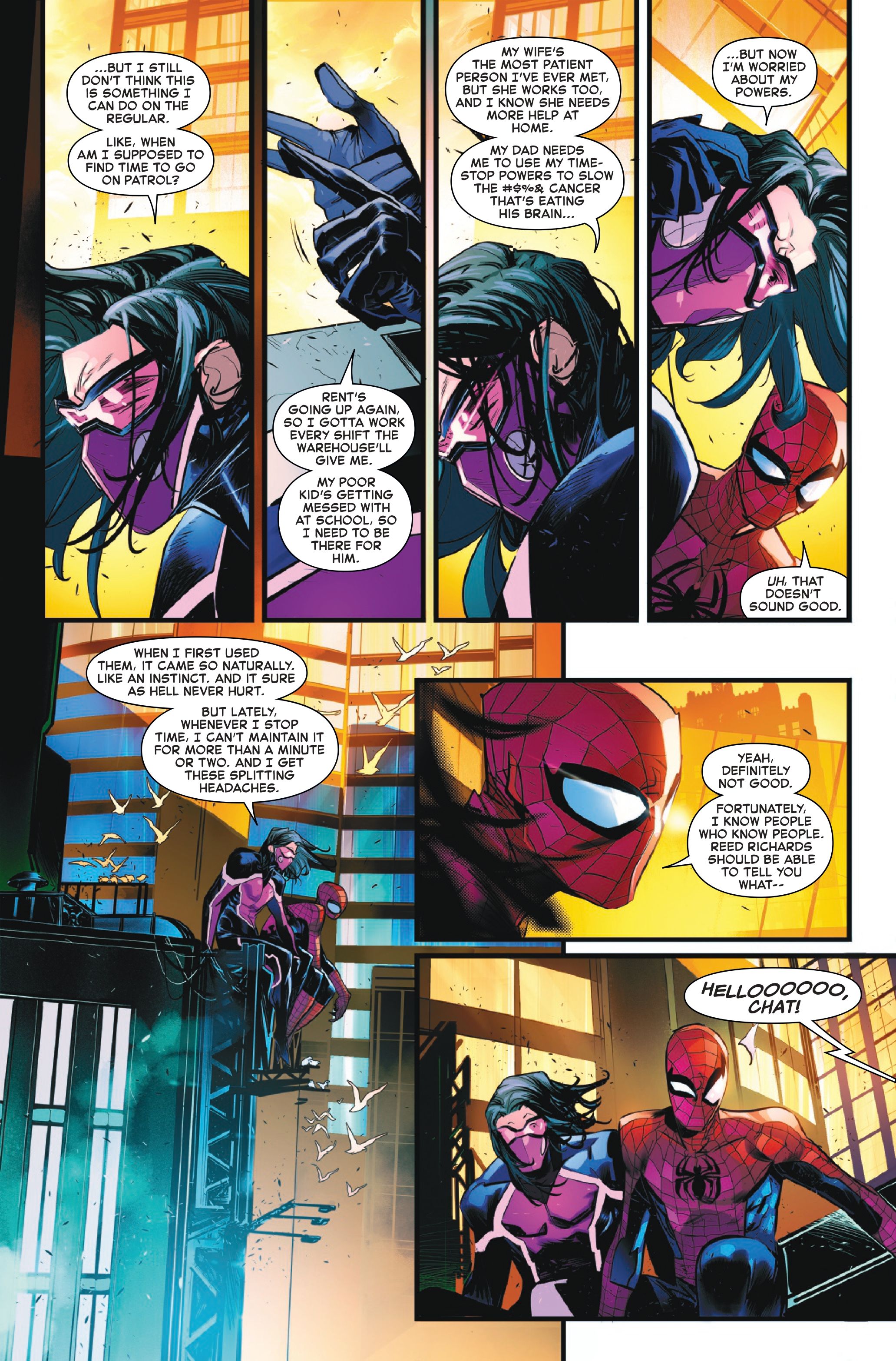 Неожиданное развитие событий заключается в том, что способность Рэпида манипулировать временем теперь вызывает у него физическую боль. Это подчеркивает, насколько важно для супергероев иметь связи. Если ты новый герой, действующий в одиночку, ты не знал бы, к кому обратиться за помощью, но Человек-паук, благодаря своим отношениям – например, с Доктором Стрэнджем – может найти кого-то, кто решит проблемы со здоровьем Рэпида.