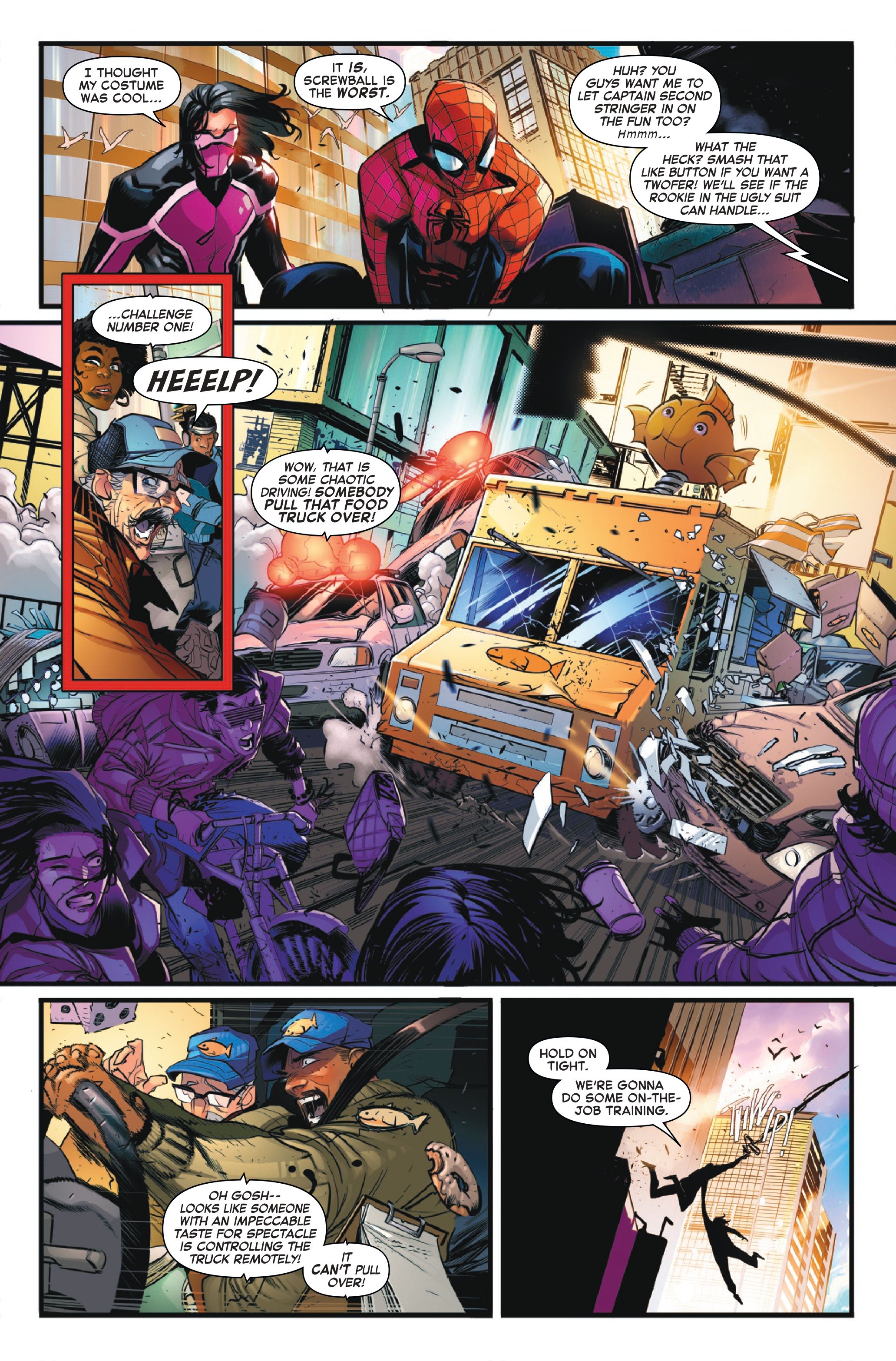Когда превью заканчивается, опытный герой и новобранец бросаются в бой, немного раздраженные онлайн-шутками о костюме Rapid. Чтобы узнать, как они справляются со странной версией Mr. Beast от Screwball, и станет ли Rapid лучше, вам нужно будет приобрести Amazing Spider-Man Annual #1 на следующей неделе!
