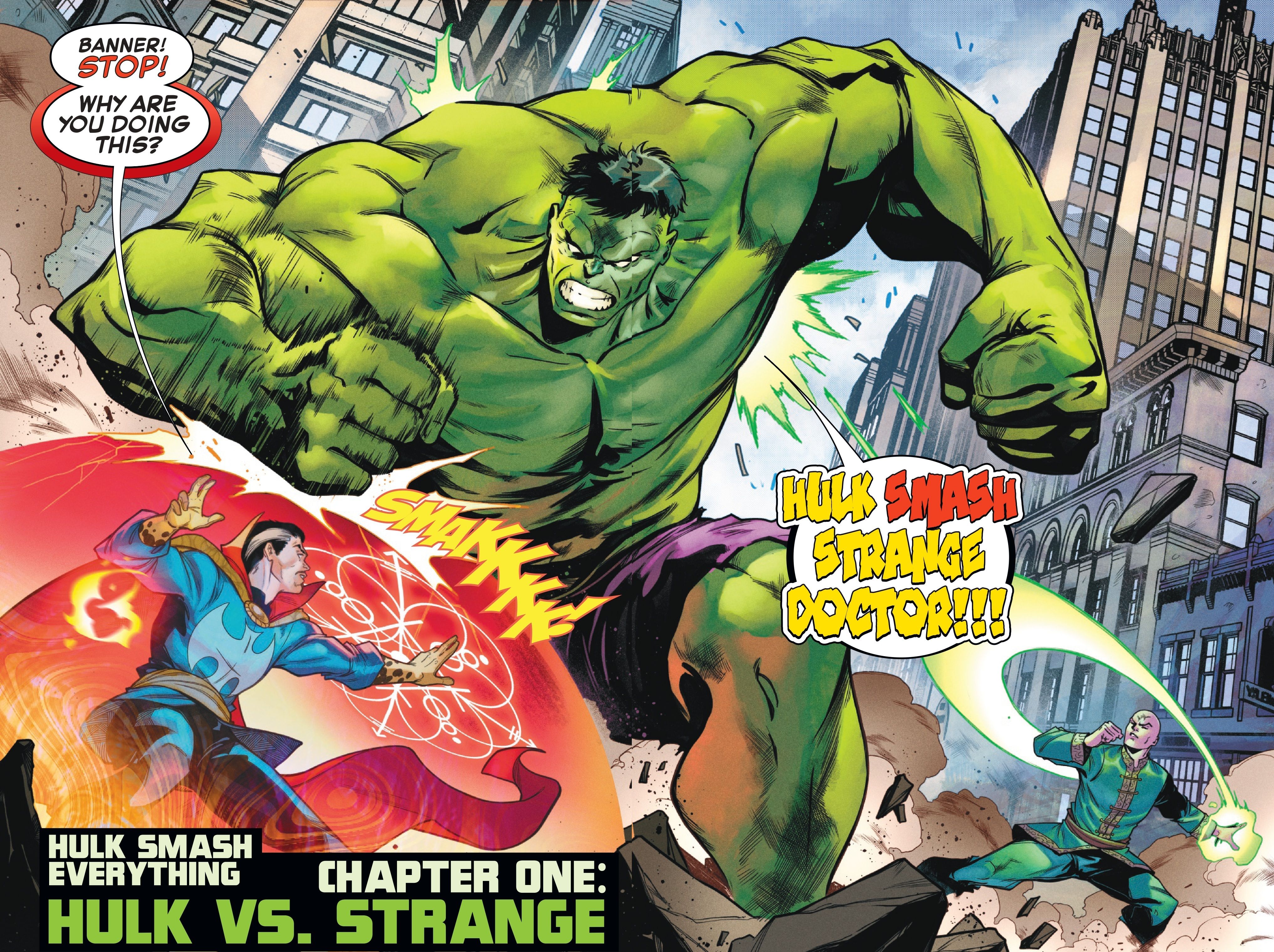 Окей, так помните, когда Халк совершенно потерял контроль в Incredible Hulk #300 и стал этой неудержимой машиной разрушений? Единственный способ остановить его был, когда Доктор Стрэндж отправил его в другое измерение. Меня это заставило задуматься – пытается ли Халк вывести Стрэнджа из игры сейчас? Я имею в виду, что это кажется основной целью этой новой мини-серии, верно? Если вы хотите узнать, что произойдет после этой первой атаки на Doctor Strange, вам нужно будет приобрести копию Hulk Smash Everything #1 на следующей неделе!