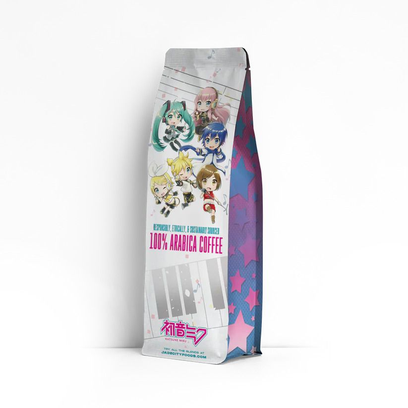 Начать разбиратьсяКомпания Crypton Entertainment и Jade City Foods объединились для создания линейки продуктов питания! В настоящее время коллекция сосредоточена на кофе, с тремя различными обжарками, доступными в США. Также есть острый вариант, и вся упаковка отличается уникальными произведениями искусства, вдохновленными миром Hatsune Miku.