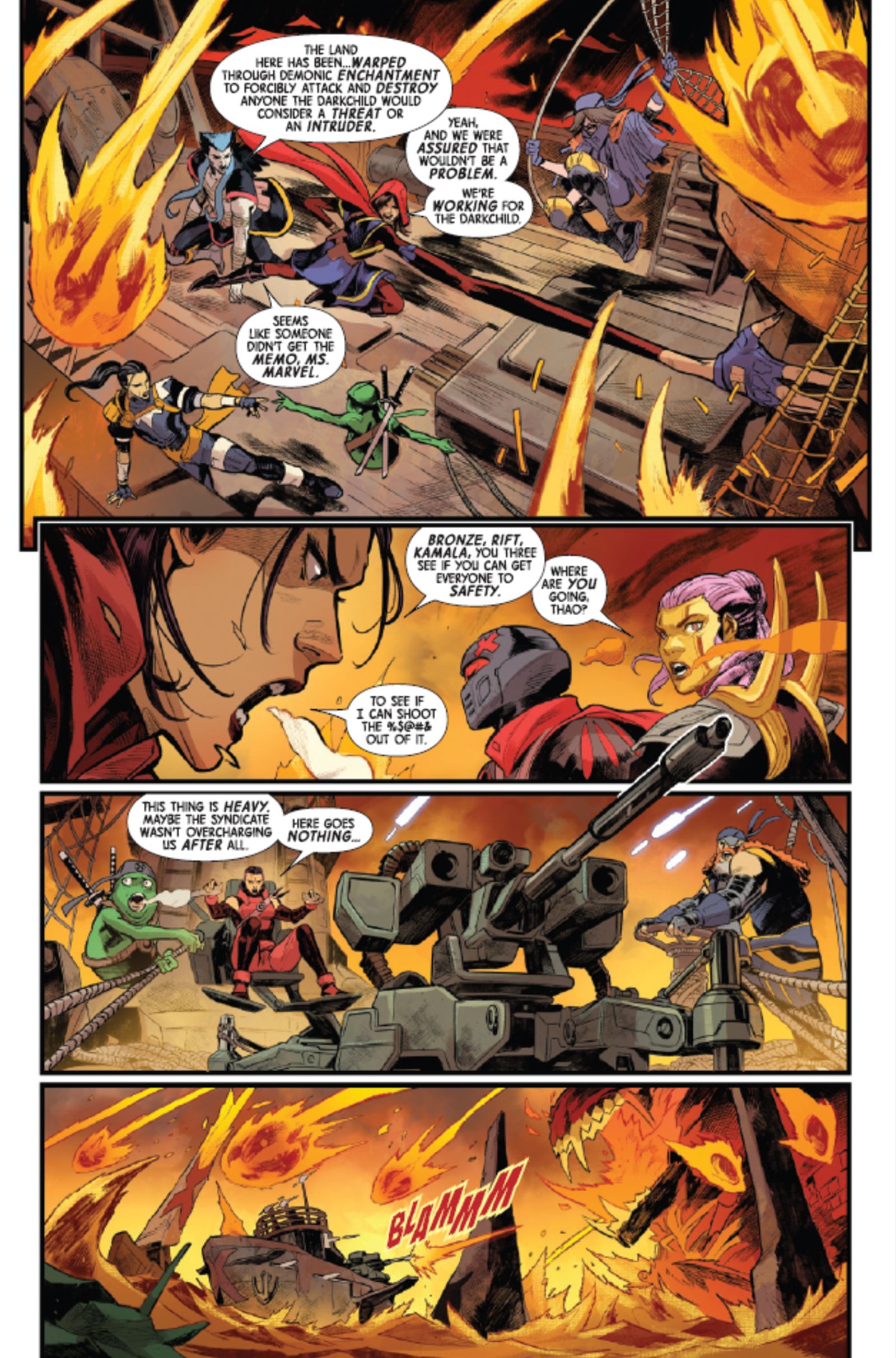 Открыть МультивселеннуюВ выпуске №3 Expatriate X-Men (от Eve L. Ewing, Francesco Mortarino, Raúl Angulo и Ariana Maher) команда отправляется к крепости Darkchild и немедленно подвергается нападению демонов из Limbo. Обычно это не было бы большой проблемой, но на этот раз Illyana — единственный шанс X-Men, хотя ее магические помощники, похоже, этого не осознают.