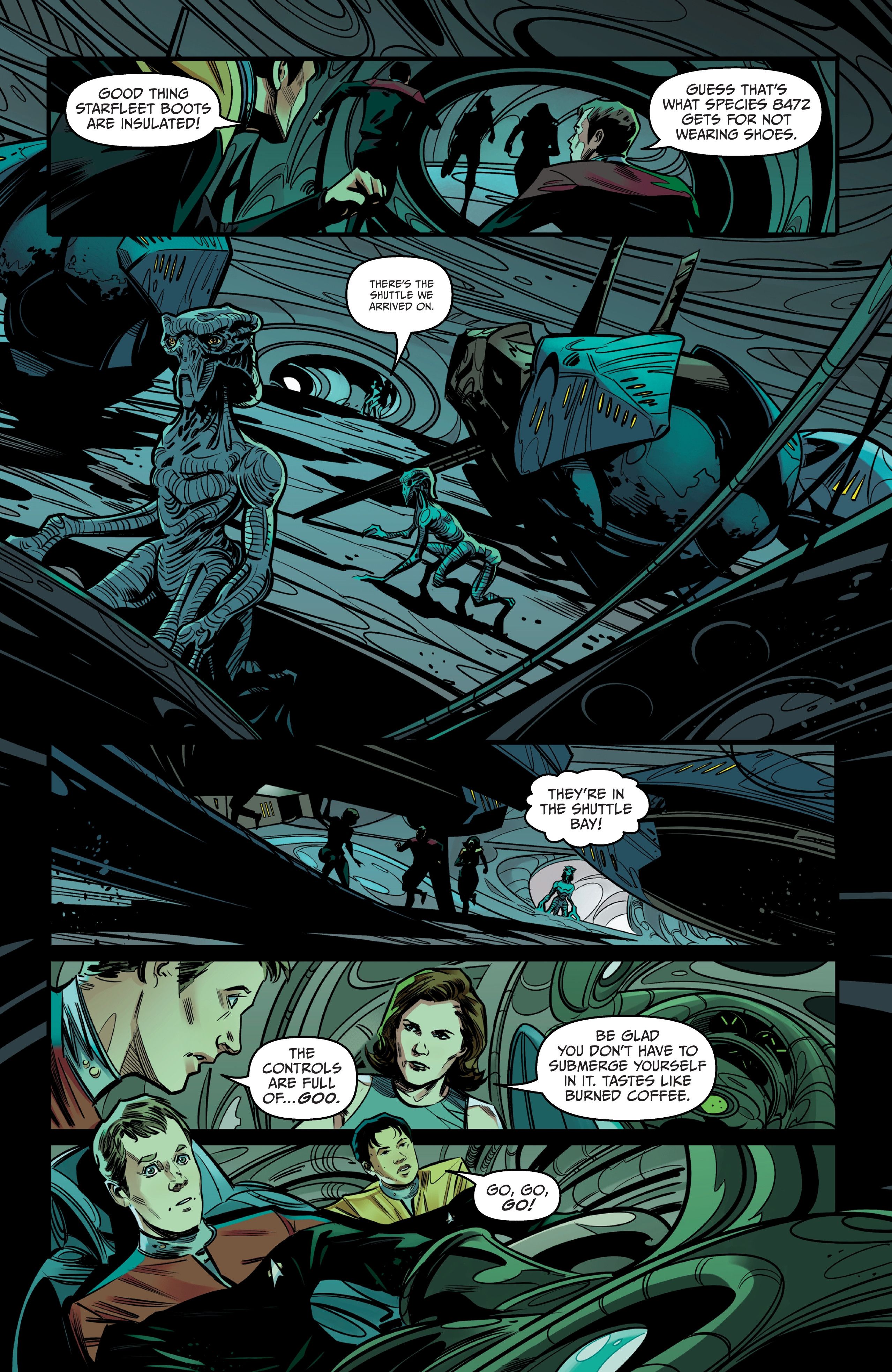 Окей, так что рисунок в этом выпуске был действительно хорош – Анхель Эрнандес и Чарли Кирхофф отлично справились. Здесь тонна экшена, и сложно добиться того, чтобы это хорошо читалось в комиксе, но они проделали отличную работу, сделав все понятным. Я всегда говорю, что комиксы по Star Trek сложны для художников, потому что там обычно много разговоров, но здесь было наоборот! Все бегают как сумасшедшие, и они сделали все супер понятным, что было потрясающе.