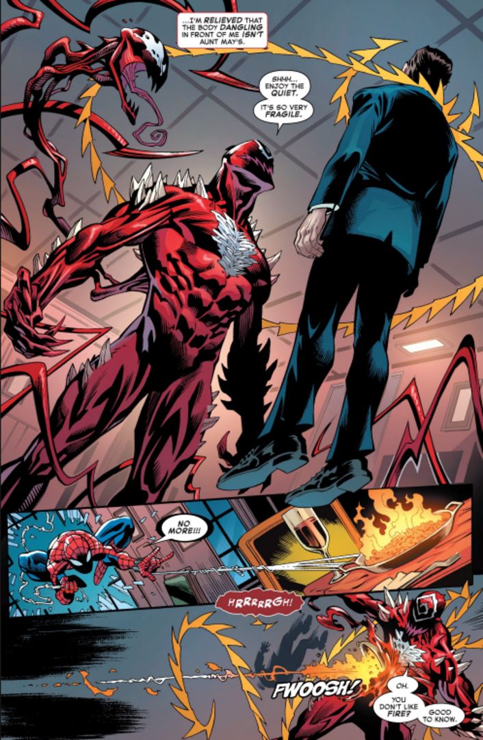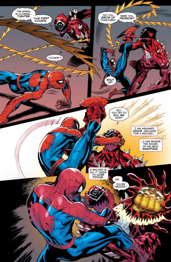 Открыть МультивселеннуюВ Amazing Spider-Man #26 Человек-паук сталкивается с Torment, который теперь объединился с симбиотом Carnage. Ситуация становится еще сложнее, когда Torment нацеливается на ранее неизвестного кузена Питера Паркера – ребенка, о котором тетя Мэй и дядя Бен никогда не говорили.