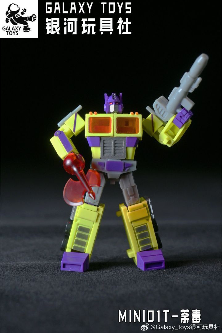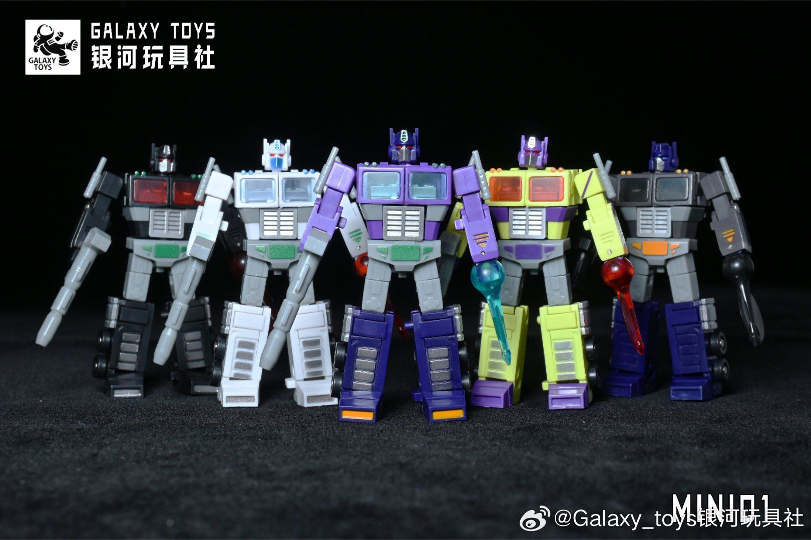 Эти новые игрушки Оптимус Прайм являются пластиковыми версиями более ранней металлической фигурки Galaxy Toys Mini-02. Хотя они не включают оригинальный трейлер, они отличаются цветовыми схемами, вдохновленными различными версиями персонажа. Например, Mini-01Z смоделирован по образу злодейского Оптимус Прайма из комикса Shattered Glass, а Mini-01T основан на Toxitron, Дисептиконе, который изначально появился как невыпущенная концепция игрушки в 2000-х годах.