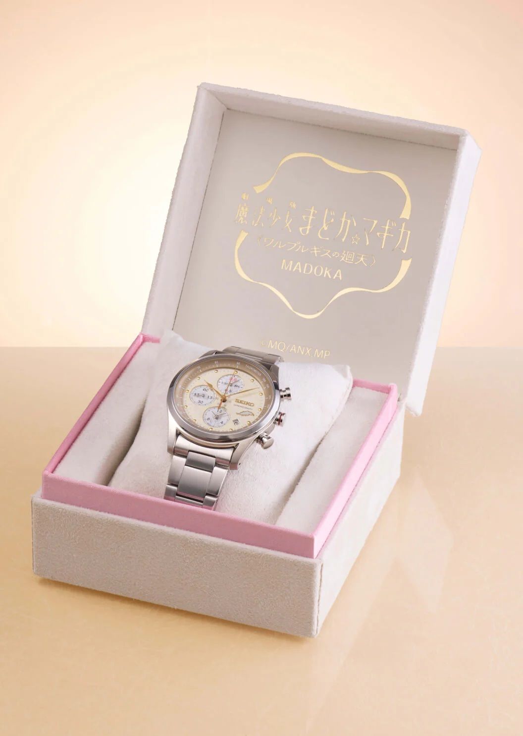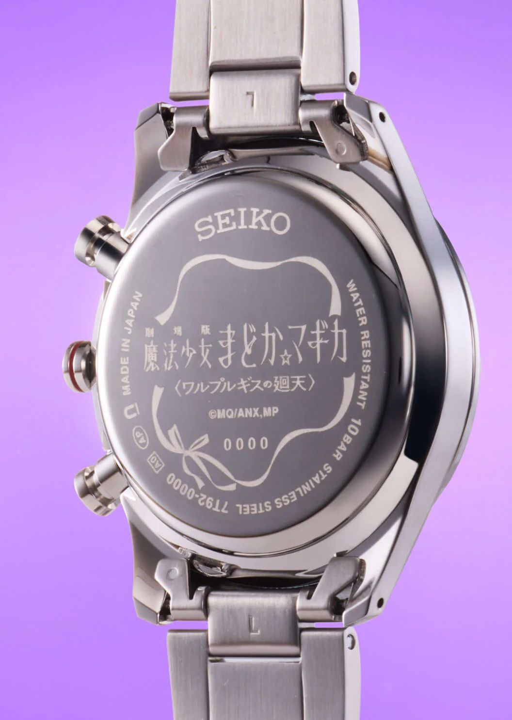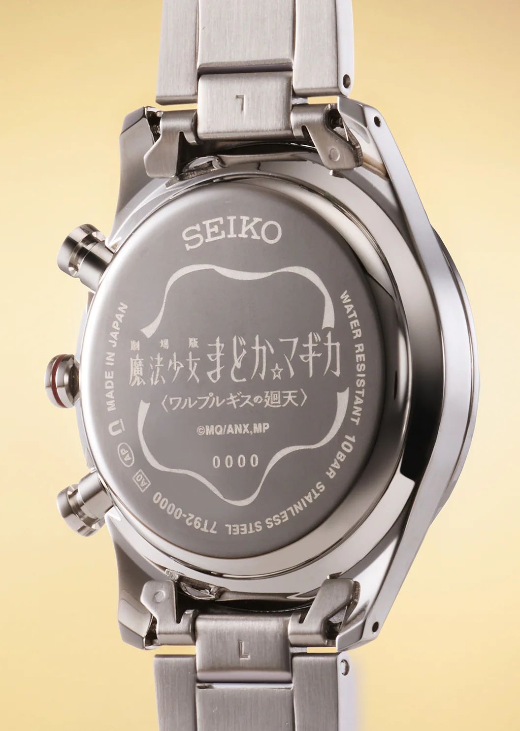 Часы Seiko, созданные в сотрудничестве с Puella Magi Madoka Magica The Movie Walpurgisnacht Rising, имеют корпус из нержавеющей стали размером 47.2 мм x 39.2 мм x 11.25 мм и соответствующий браслет из нержавеющей стали. Они защищены прочным стеклом Hardlex. Каждая версия циферблата разработана в стиле определенного персонажа: версия Madoka отличается уникальным пожелтевшим бронзовым цветом, а Homura — глубоким пурпурным.