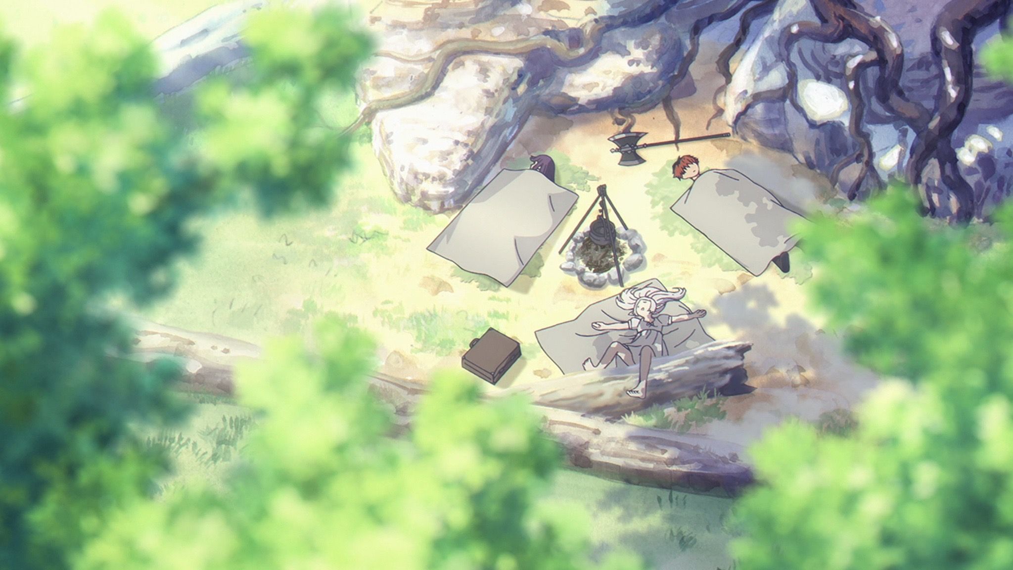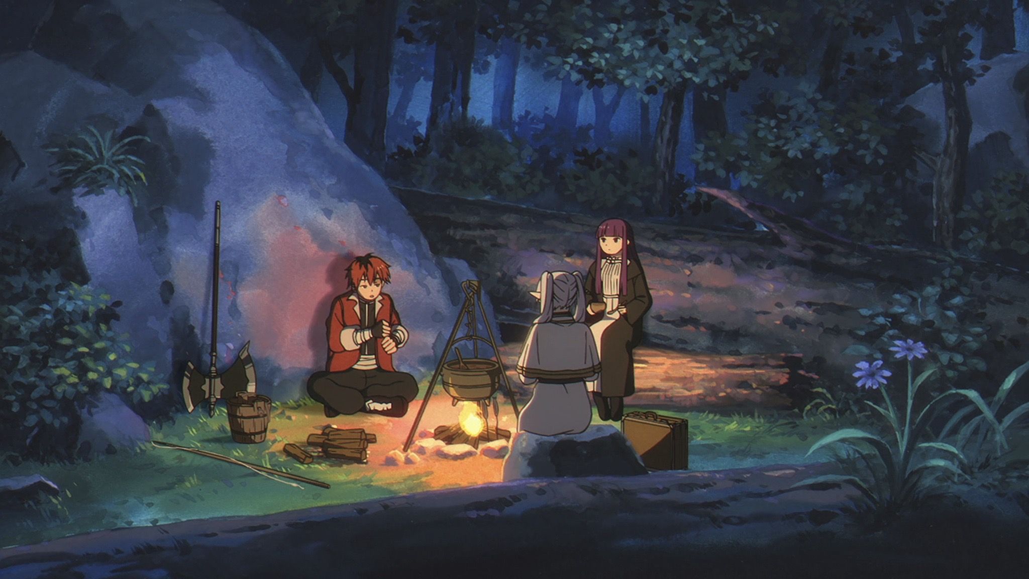 Первая часть эпизода следует за группой в, казалось бы, ненужной поездке к скрытым горячим источникам в горах Этвас. Хотя путешествие не продвигает основную сюжетную линию, оно прекрасно демонстрирует глубину и качество персонажей в Frieren. Поездка достигает тихо юмористического пика, когда они наконец прибывают, только чтобы обнаружить, что горячие источники — это всего лишь небольшая ванночка для ног после всех их усилий.
