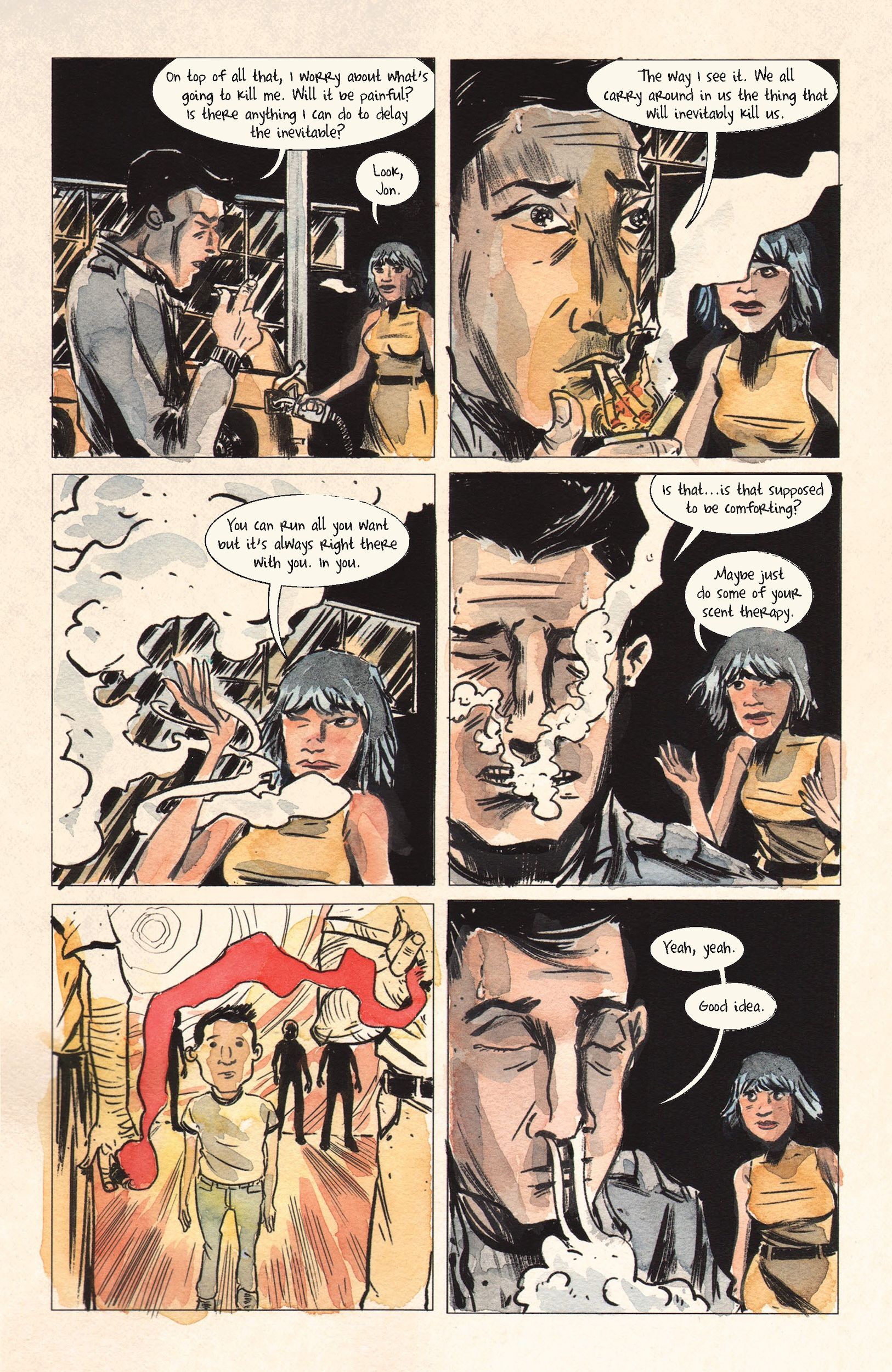 История начинается с представления детективов Дельфи и Свон. Детектив Джон Свон изо всех сил пытается сосредоточиться, и, как показано на превью-страницах (которые не содержат спойлеров, поскольку они были выпущены Oni Press), он вступает в увлекательную беседу о памяти.