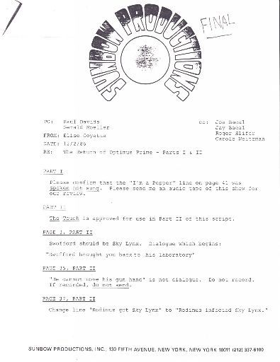 Арси впервые появилась в The Transformers: The Movie, и многие персонажи этого фильма были разработаны под вдохновением от концепт-артов Гвидо Дери. Заметки из финальных эпизодов 3-го сезона раскрывают, что песня Стэна Буша, ‘The Touch’, была выбрана для финала. Эта запоминающаяся песня уже звучала в The Transformers: The Movie во время битвы Оптимуса Прайма с Мегатроном и когда Родимус Прайм одержал победу. В коллекцию также входят сценарии, использованные для повторов 20 эпизодов в The Bozo the Clown Show, которые помогли Майклу Чарльзу Хиллу вступить в Гильдию сценаристов Америки. Хотя 3-й сезон The Transformers часто является предметом споров из-за отсутствия Оптимуса Прайма и его более серьезного тона, многие из его персонажей и идей были пересмотрены и переосмыслены в недавних мультфильмах и других медиа.