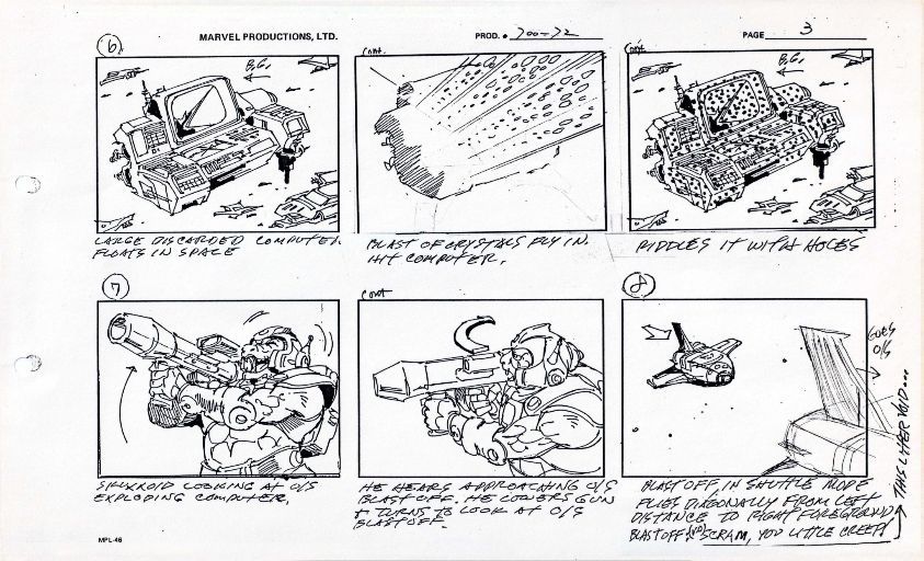Коллекция Пола Дэвидса, включающая наброски, сценарии, раскадровки и модели, предлагает взглянуть за кулисы третьего сезона The Transformers, особенно поздних эпизодов. Она включает сценарий эпизода ‘Chaos’, в котором ветеран-автобот Кап сражался с монстром из своего прошлого – версию, отличную от финального вышедшего в эфир эпизода. Производственные материалы третьего сезона становятся все более доступными, и одним из главных моментов является многосерийный финал ‘The Return of Optimus Prime‘, который навсегда вернул Оптимуса Прайма к жизни и поручил ему остановить смертоносную Hate Plague. Среди концепт-арта выделяется эскиз экзоскелетной брони Джессики Морган. Ее дизайн тесно напоминает работы Флоро Дери над оригинальными женскими автоботами первого поколения, такими как Арси и первоначальный дизайн для Элиты-Один, Ариэль.