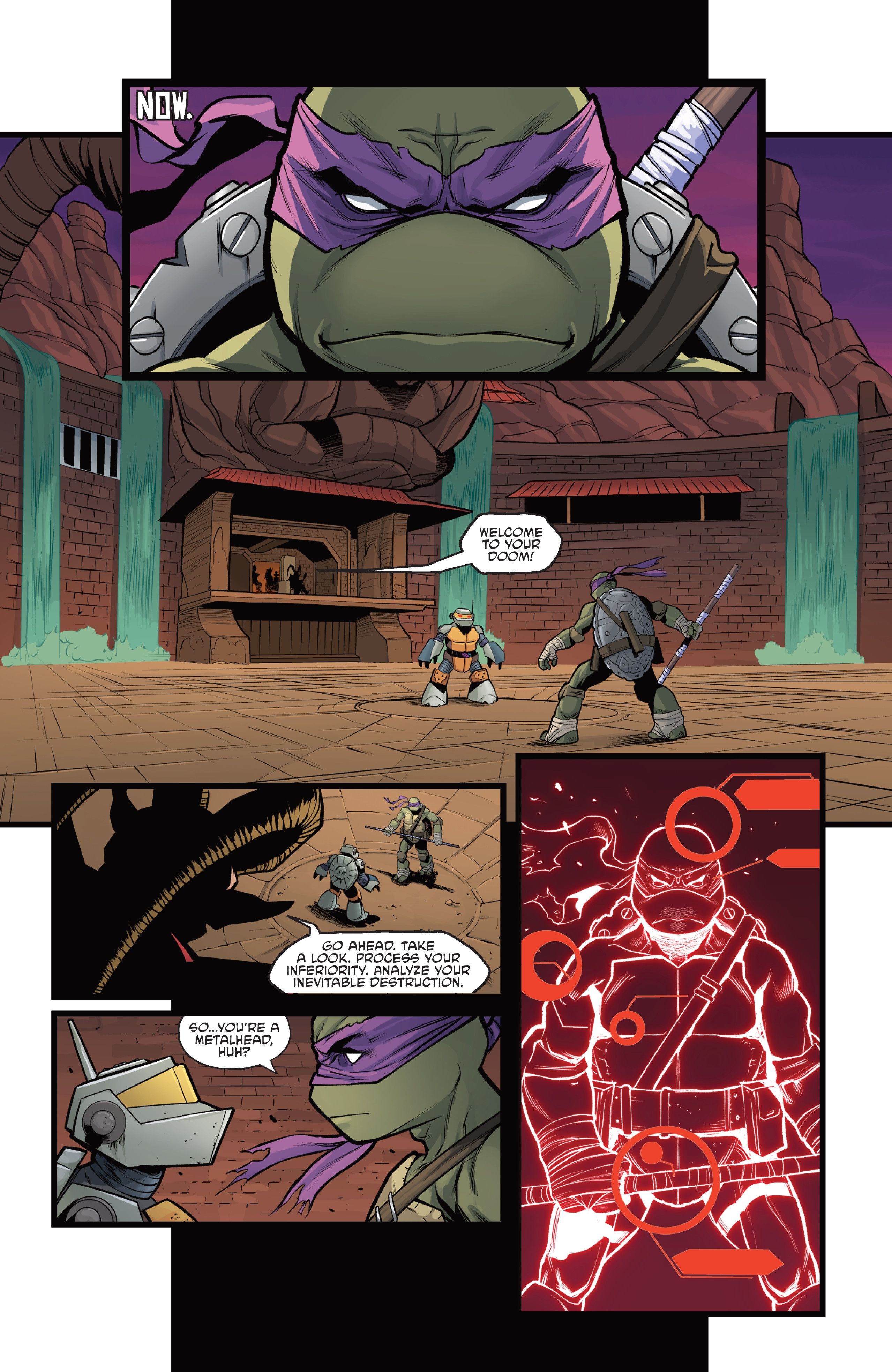 Донателло использует уязвимость Металхеда в своих интересах, быстро побеждая его. Однако это нарушает планы Ромеро, и Донателло предвидит, что Ромеро не будет соблюдать правила. Он намеренно провоцирует Ромеро публично, ожидая быть изгнанным – и это именно то, что происходит. Но Ромеро, подобно Краному Черепу, становится беспечным и совершает ошибку: вместо того, чтобы изгнать Донателло в одиночку, он отправляет с ним Металхеда.