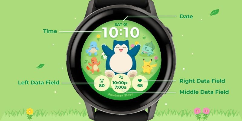 Оба новых циферблата показывают покемонов, меняющих свои позиции в течение дня в зависимости от вашего уровня активности. Ночью они отображают, как спят представленные покемоны, при этом каждую ночь появляется новый стиль сна. Циферблат Pokémon Sleep: Snorlax & Friends показывает Снорлакса, Чармандера, Бульбазавра, Сквиртла и Пикачу, отдыхающих на острове Гринграсс, а Pokémon Sleep: I Choose You позволяет увидеть вращающийся выбор из 48 различных покемонов.