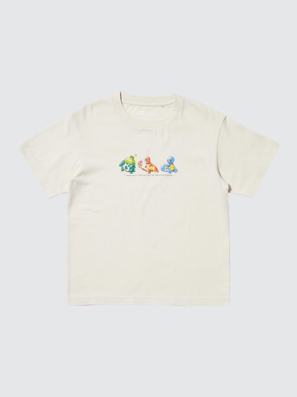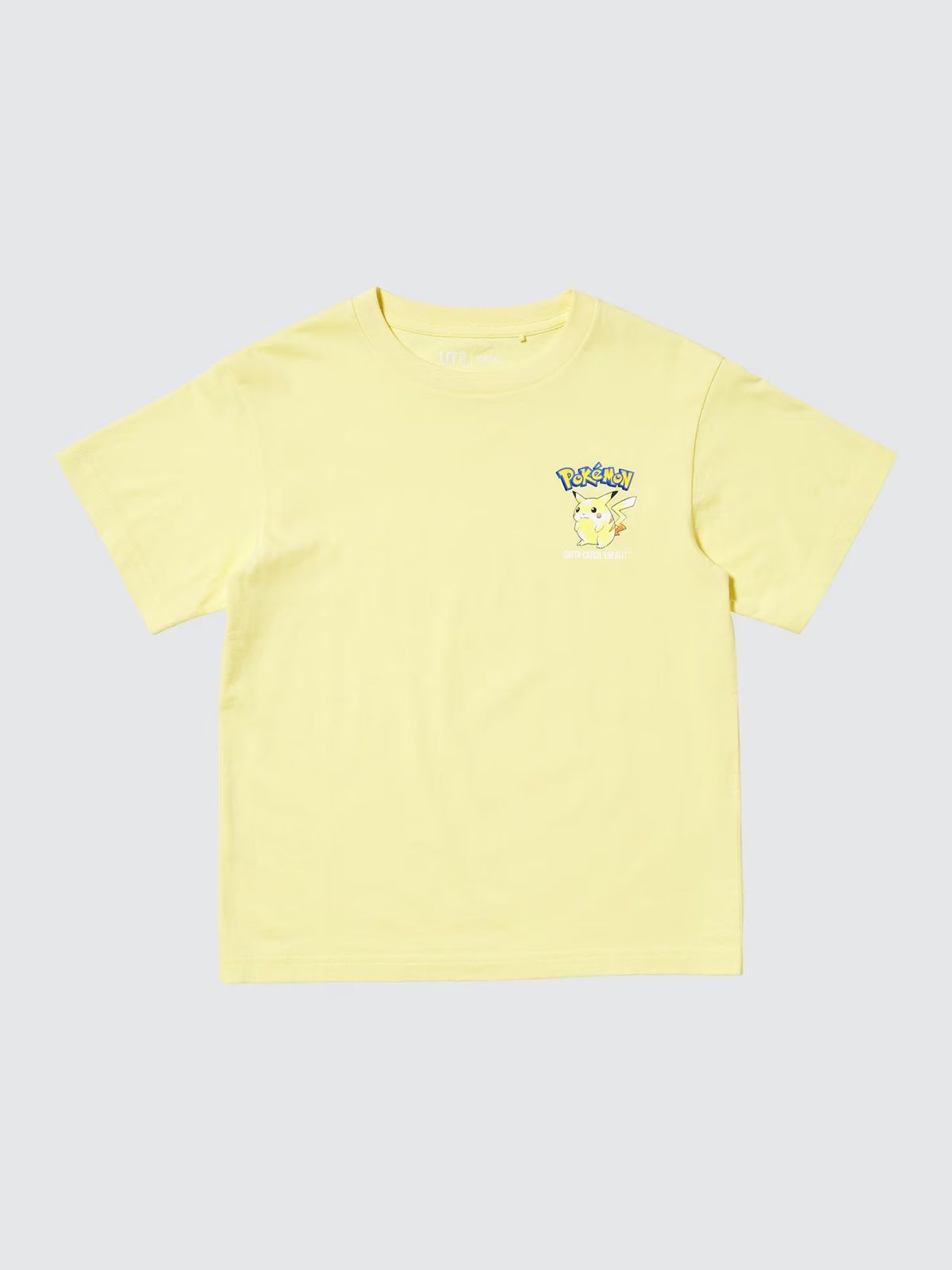 Детские размеры используют те же первые три дизайна, но цвета футболок отличаются. Футболка с начальными покемонами имеет кремовый фон, дизайн с Charizard — на ярко-красной футболке, а дизайн с Pikachu — на жёлтой. Дизайны Snorlax и Gengar были заменены на Mewtwo и Mew.