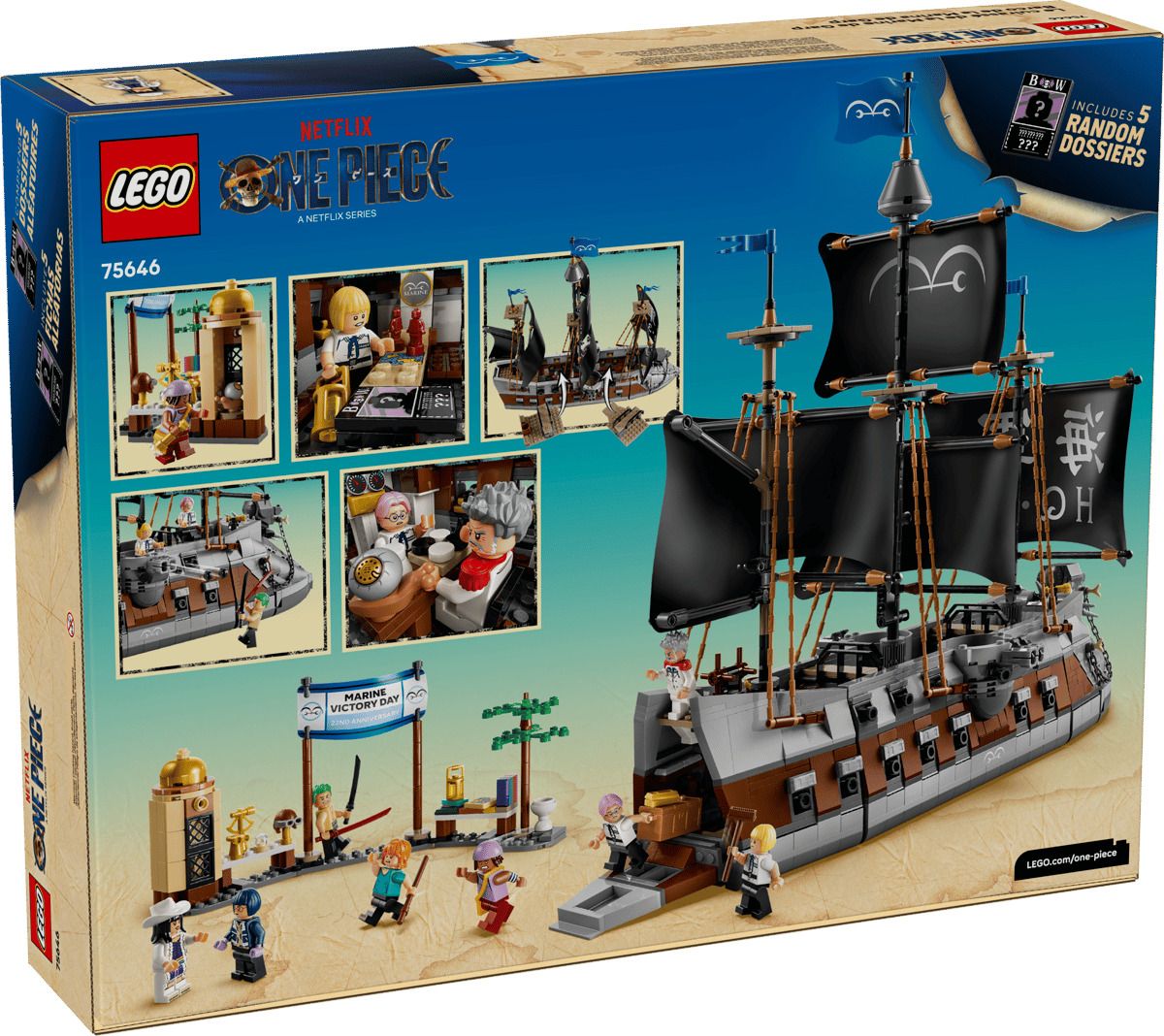 Самый большой набор LEGO, который был выпущен, — это Морской корабль Гарпа, состоящий из 1 705 деталей. В настоящее время он доступен для предварительного заказа по цене $179.99 и включает в себя восемь минифигурок: Zoro, Usopp, Miss All Sunday, Nami, Tashigi, Helmeppo и Koby.
