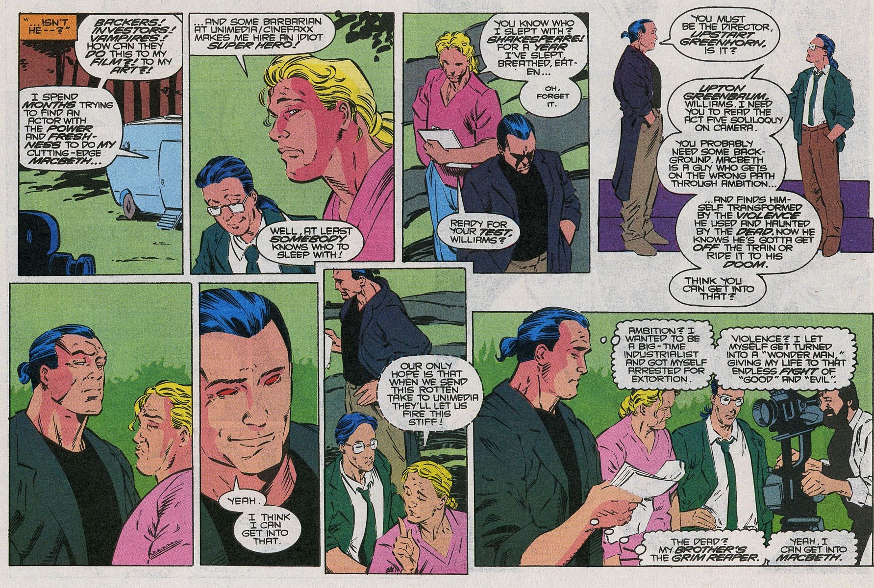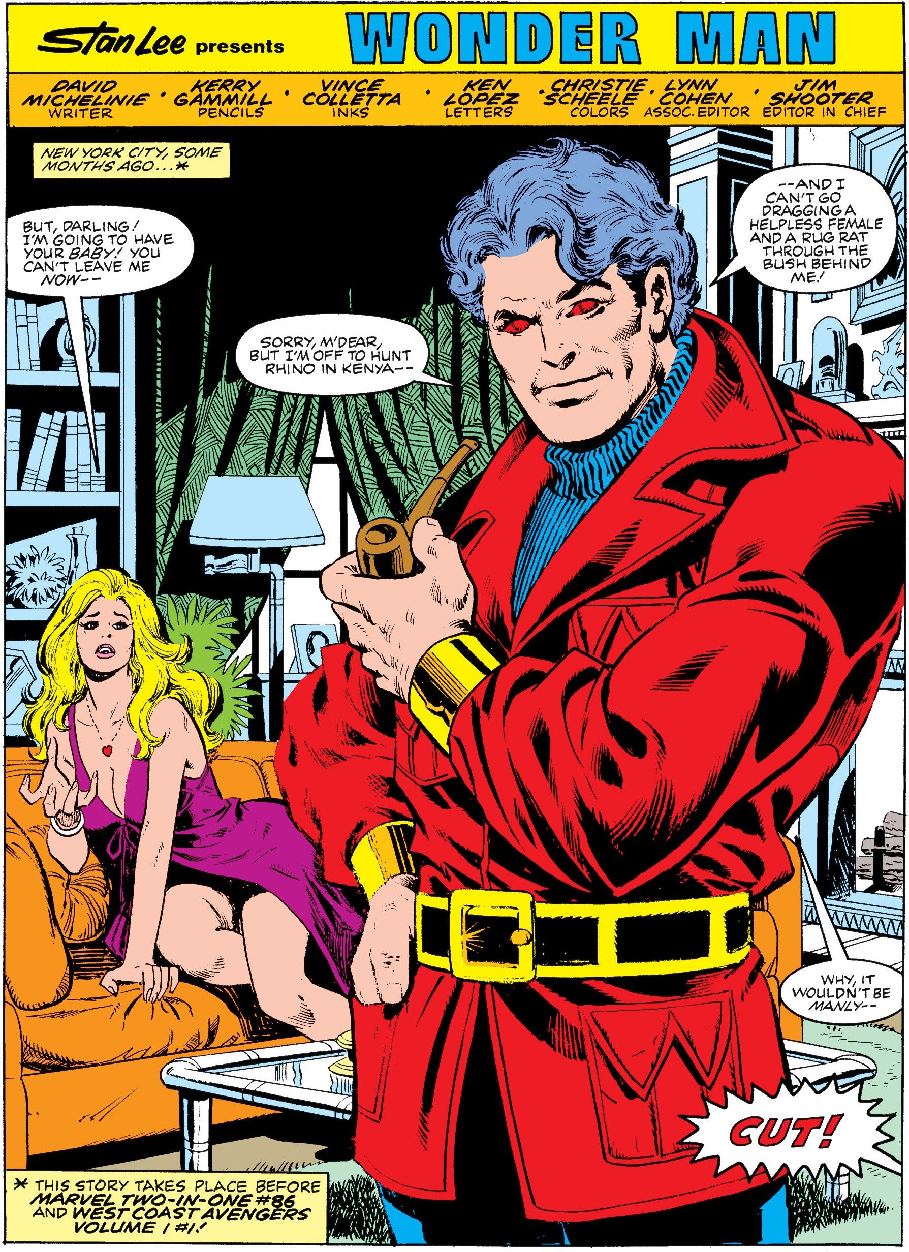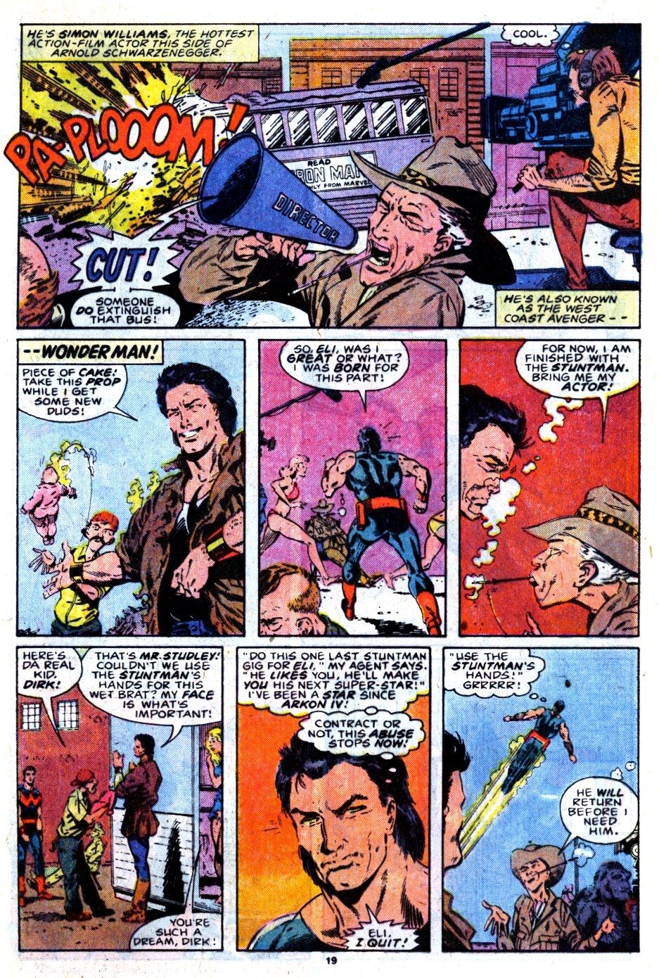 Итак, в первом выпуске Wonder Man – он написан Джонсом, Джеффом Джонсоном и Терри Остином – Саймон действительно уклоняется от любых просьб сниматься в боевиках. Честно говоря, это как-то объясняет, почему та трехчастная сделка, которую он заключил, сорвалась!