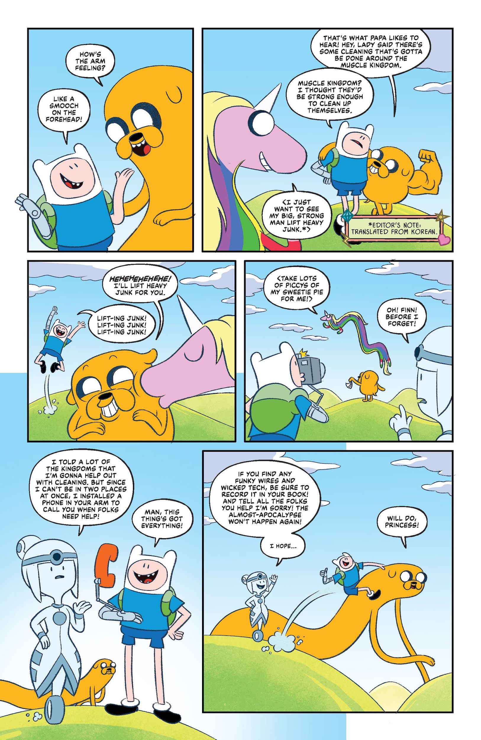 Начать разбиратьсяПо словам Винна, следующая сюжетная арка в комиксе по Adventure Time расскажет о том, как Финн и Джейк пытаются исправить беспорядок, который они натворили в предыдущих приключениях. У Финна новая роботизированная рука, и пара работает в качестве клининговой бригады Ооо, но всё осложняется Робо-Финном, который всё ещё там и устраивает неприятности! Эта четырехсерийная арка будет сосредоточена на людях и местах Ооо, пока они ищут Робо-Финна, и Винн особенно заинтригован тем, что фанаты подумают о странной зеленой плесени, растущей на роботе!
