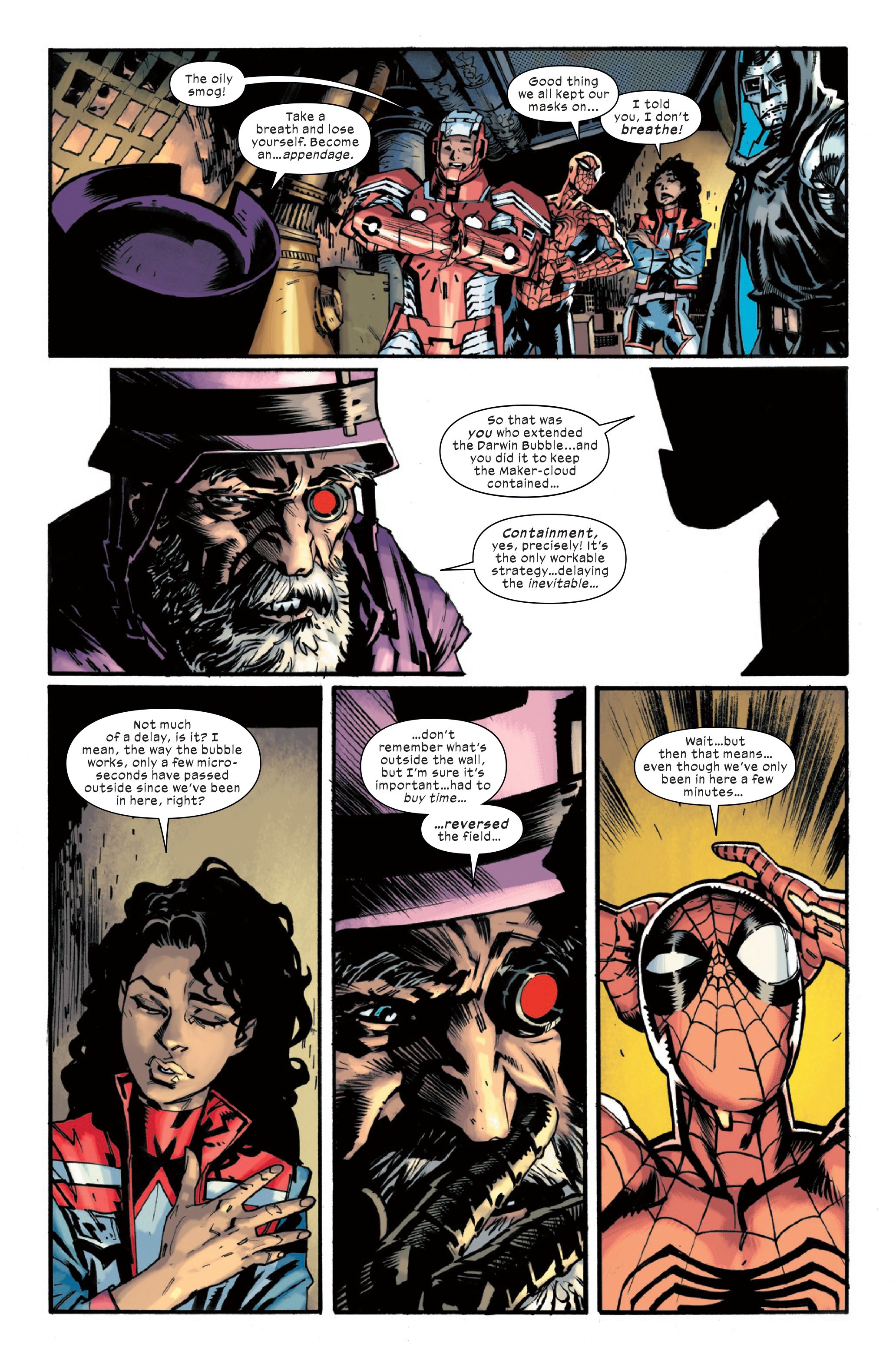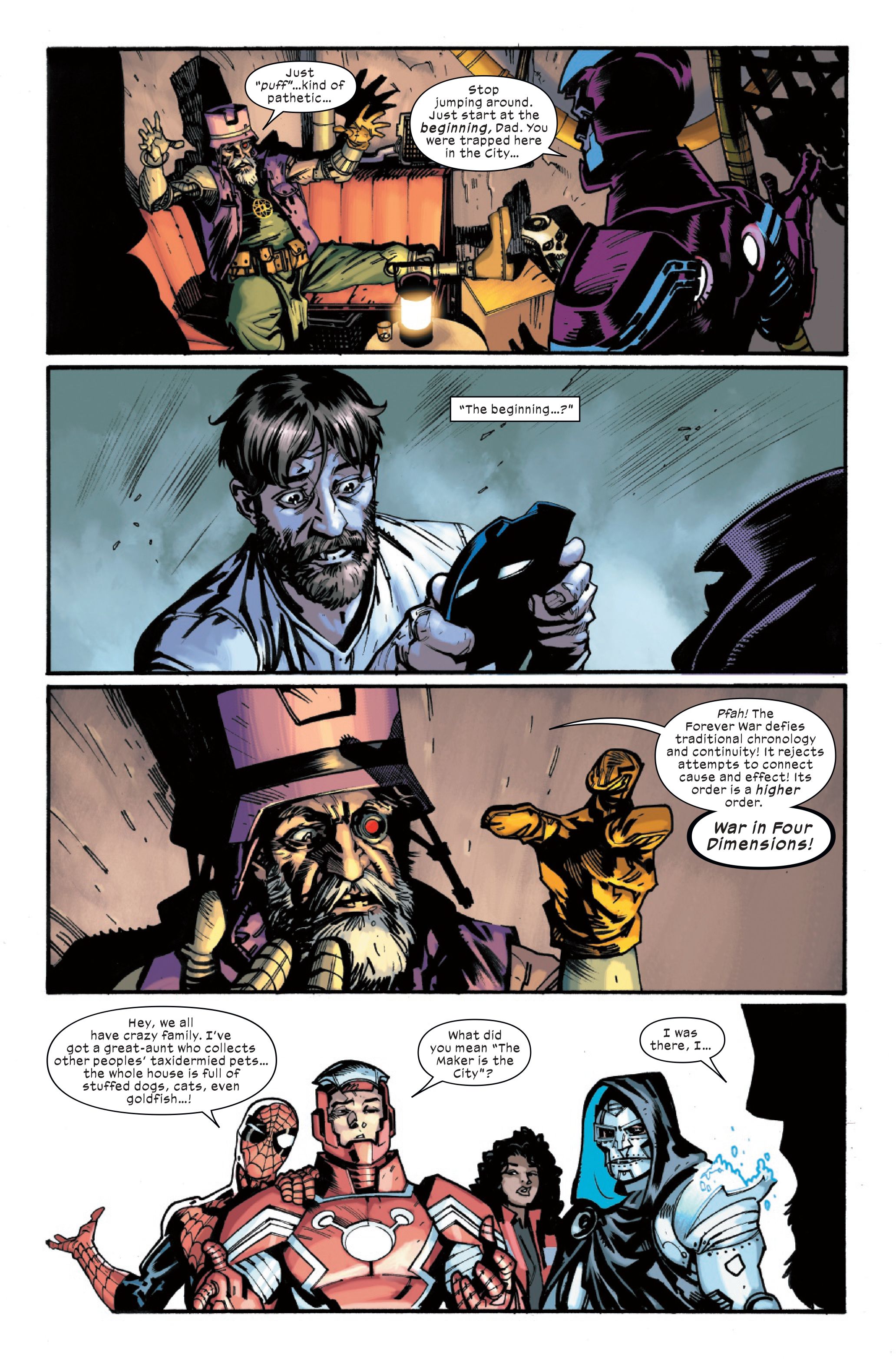 Человек-паук, Америка Чавес, Киллмонгер, Doom и другие герои из Ultimate Universe находятся в отчаянной гонке против Maker. Тем временем, Iron Lad раскрывает шокирующую правду с потенциально вселенскими последствиями. Этот важный выпуск полон сюрпризов и оставит вас ошеломлёнными!