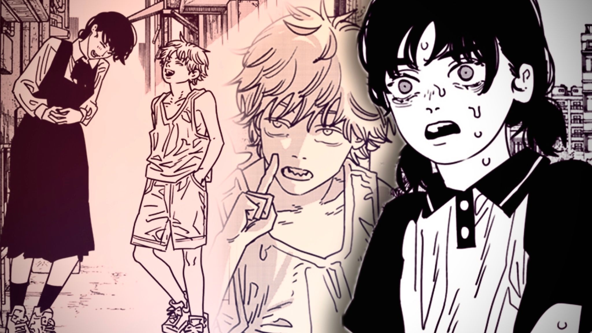 Концовка 217-й главы *Chainsaw Man*, показывающая Денджи и Асу, смеющихся, одновременно трогательна и тревожна. Хотя это и светлая сцена, в ней ощущается тьма, потому что они смеются над тем, насколько трагичны их жизни. Иронично смешно, когда Денджи утверждает, что он хороший человек, несмотря на признание в тёмном поступке. Эта абсурдность затем противопоставляется финальному изображению Ёру и Почита, обоих побеждённых с отрубленными головами, но странным образом довольных своим сражением.
