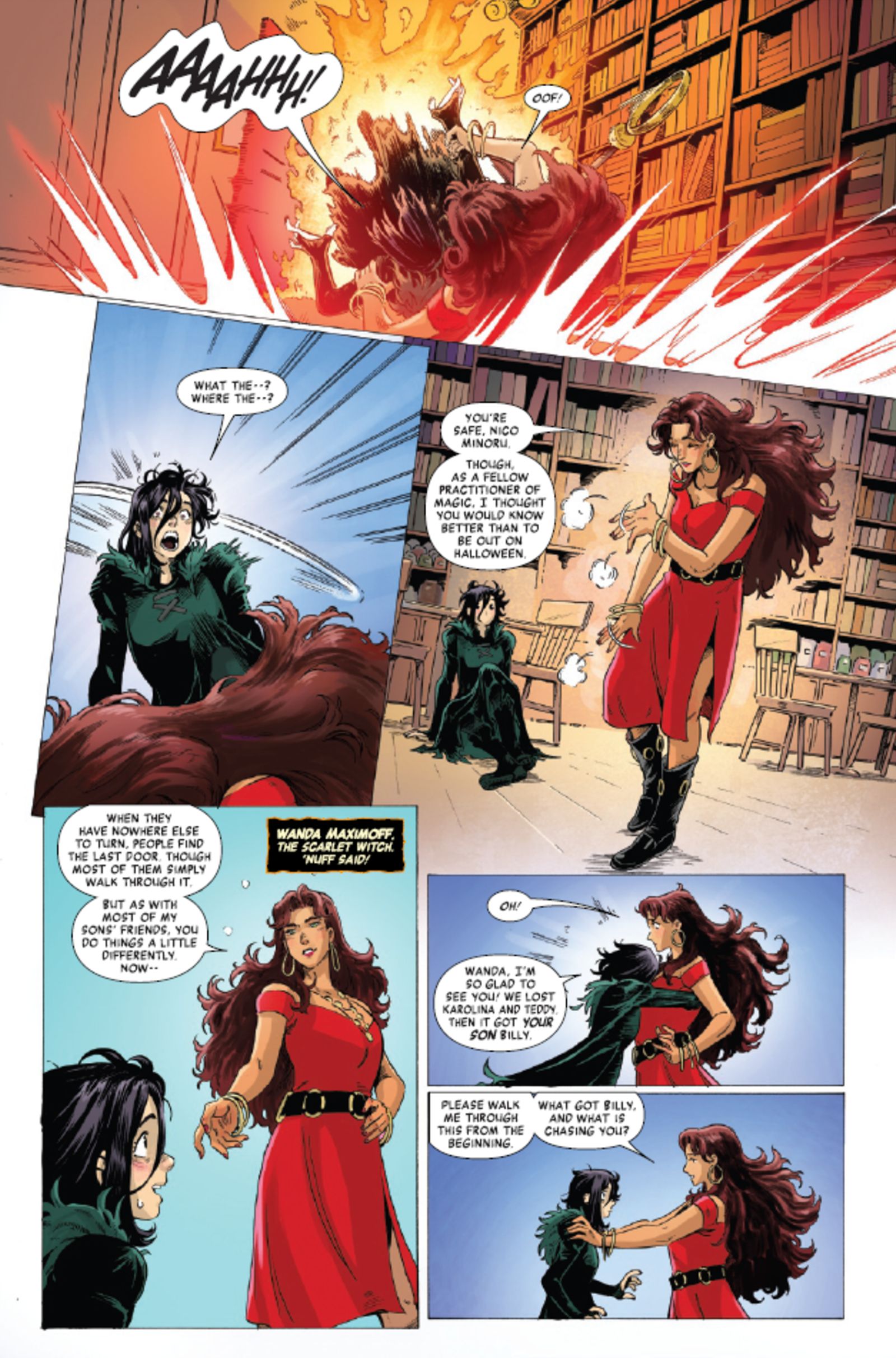 Открыть МультивселеннуюЗагляните в предпросмотр комикса Marvel *Strange Tales* #1 (от Джереми Уитли, Бейли Андервуд, Джима Кэмпбелла и Джо Караманья), где Нико Минору отчаянно бежит по городу в Хэллоуин, пытаясь оторваться от ужасающего дракона. Она быстро понимает, что попала в ловушку и ей некуда деваться. Но с использованием магии – и находясь рядом с Последними Вратами Алой Ведьмы – побег возможен, и Нико переносится в гораздо более безопасное место.