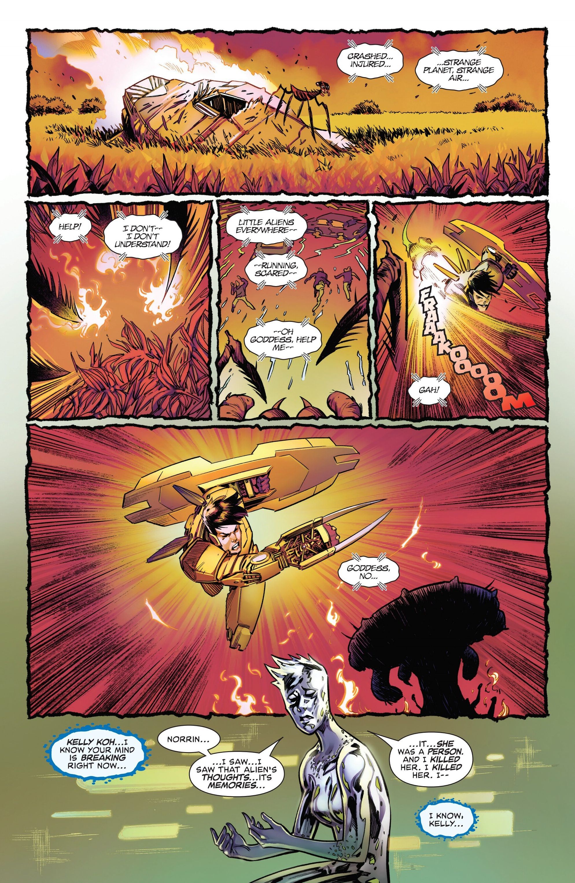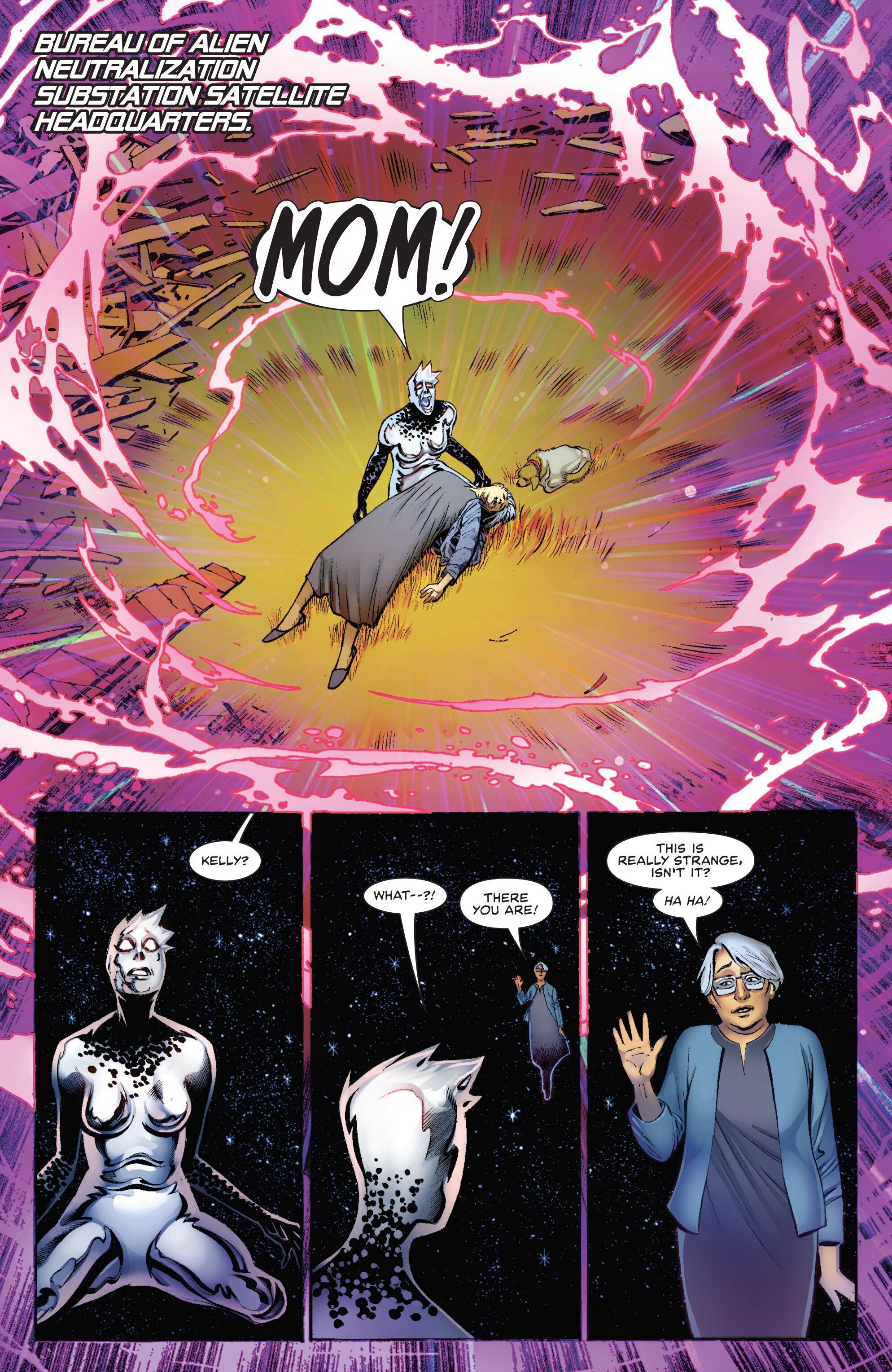 Келли ненадолго переживает воспоминания поверженного ею инопланетянина, что даёт ей новое понимание вещей с его точки зрения. Это осознание – обратное распространённой идее о видении людей глазами инопланетянина – заставляет Келли понять, что её работа с BAN была ошибочной. Она немедленно уходит в отставку и объединяется с Серебряным Серфером и Фантастической Четвёркой, чтобы сразиться со своим бывшим боссом, Хармоном.