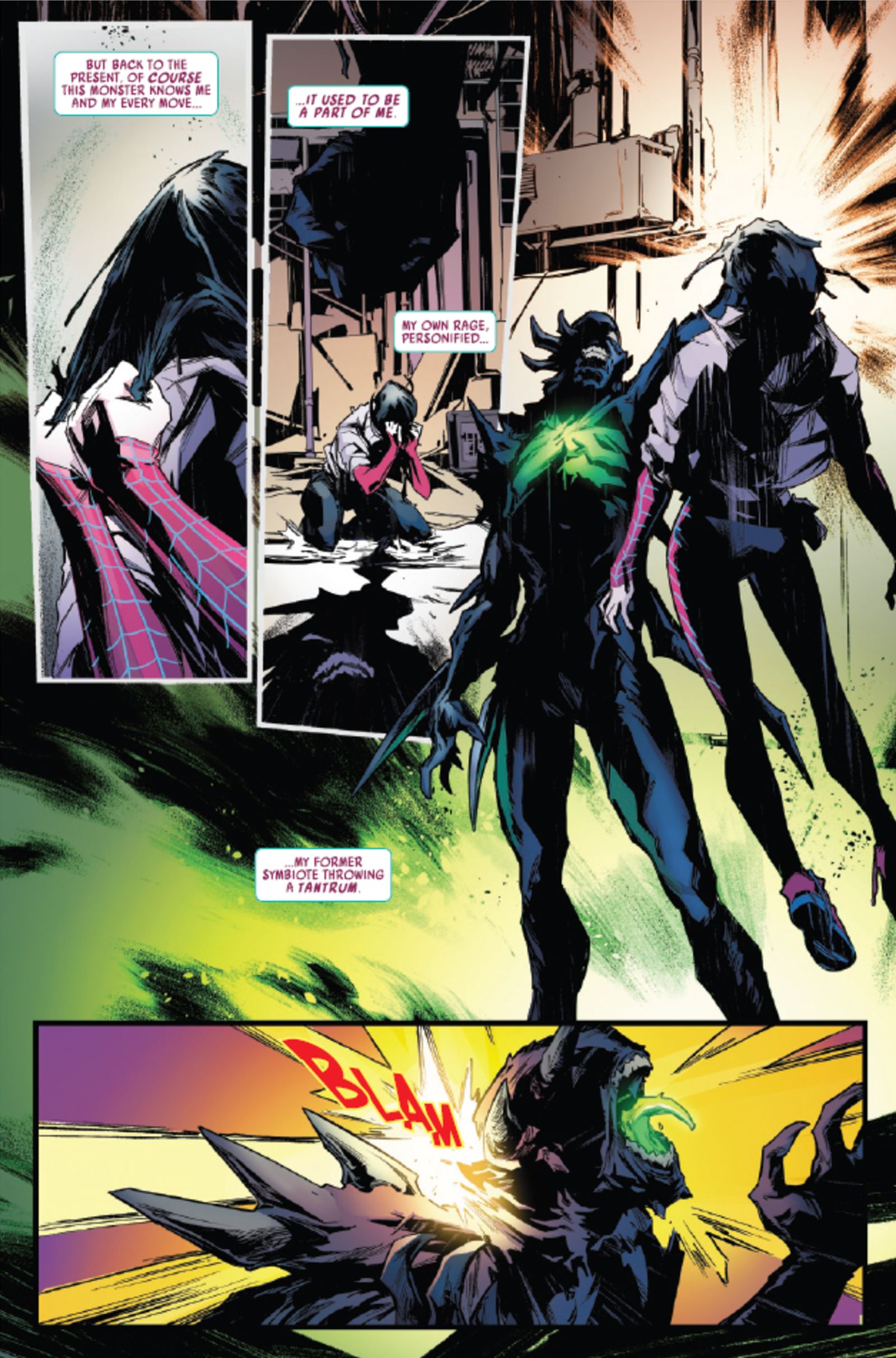Spider-Gwen, также известная как Ghost-Spider, не была частью вселенной Marvel так долго, как некоторые другие герои, но её предыстория столь же сложна. Изначально из другой вселенной и путешествуя между мирами, она была вовлечена во многие масштабные Межвселенские события. В последнее время, после смелого столкновения даже с могущественными врагами, такими как King Loki, Spider-Gwen решила сделать Землю-616 своим постоянным домом. Это означало отказ от симбиотических сил, на которые она полагалась долгое время. Неизвестно Gwen, симбиот, которого она оставила, искал нового хозяина и теперь появился в виде нового суперзлодея по имени Tantrum.