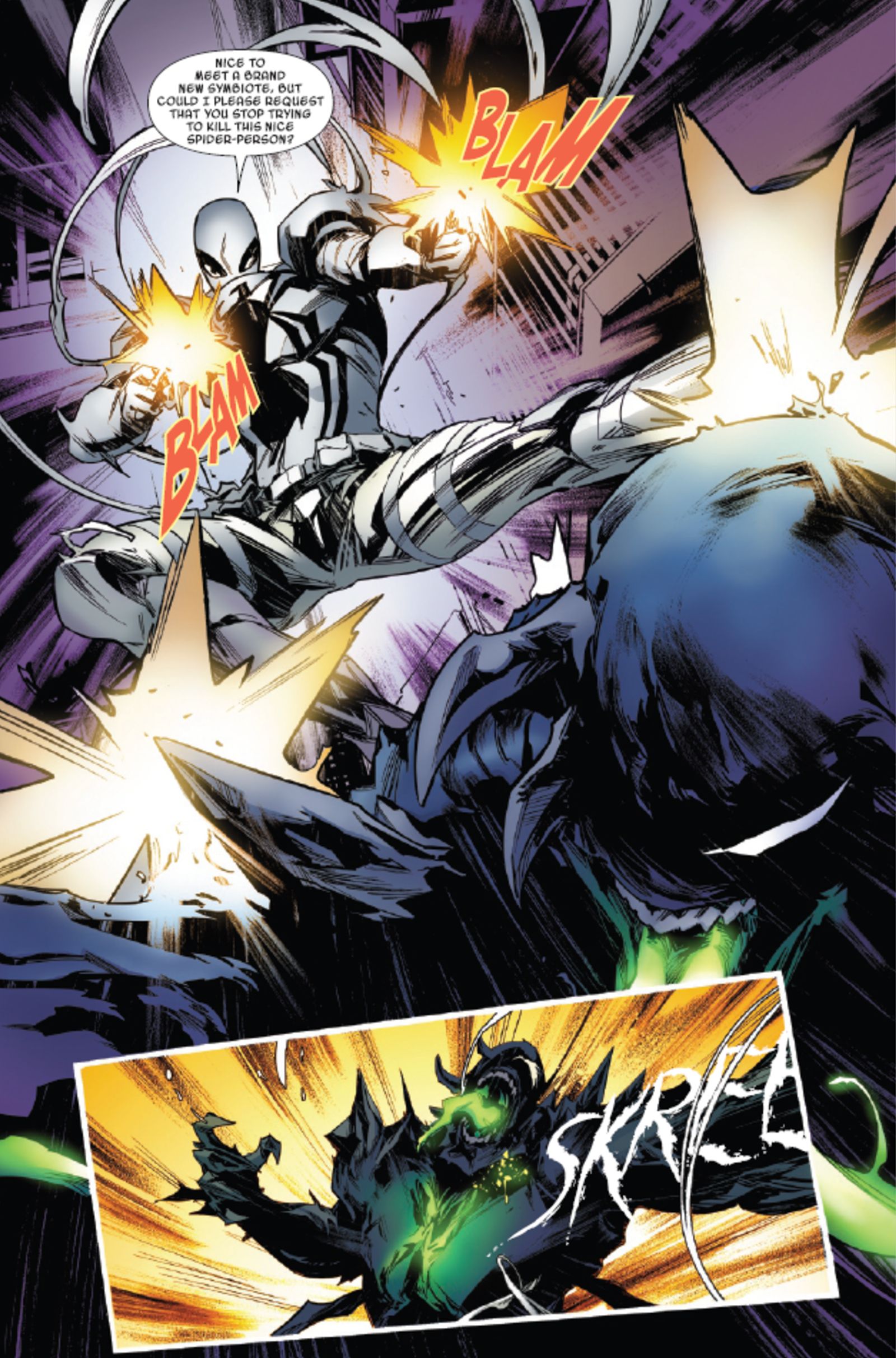 Призрачный паук от Marvel сталкивается с новым, опасным врагом – симбиотом – и она только что получила помощь от неожиданных, но желанных союзников.