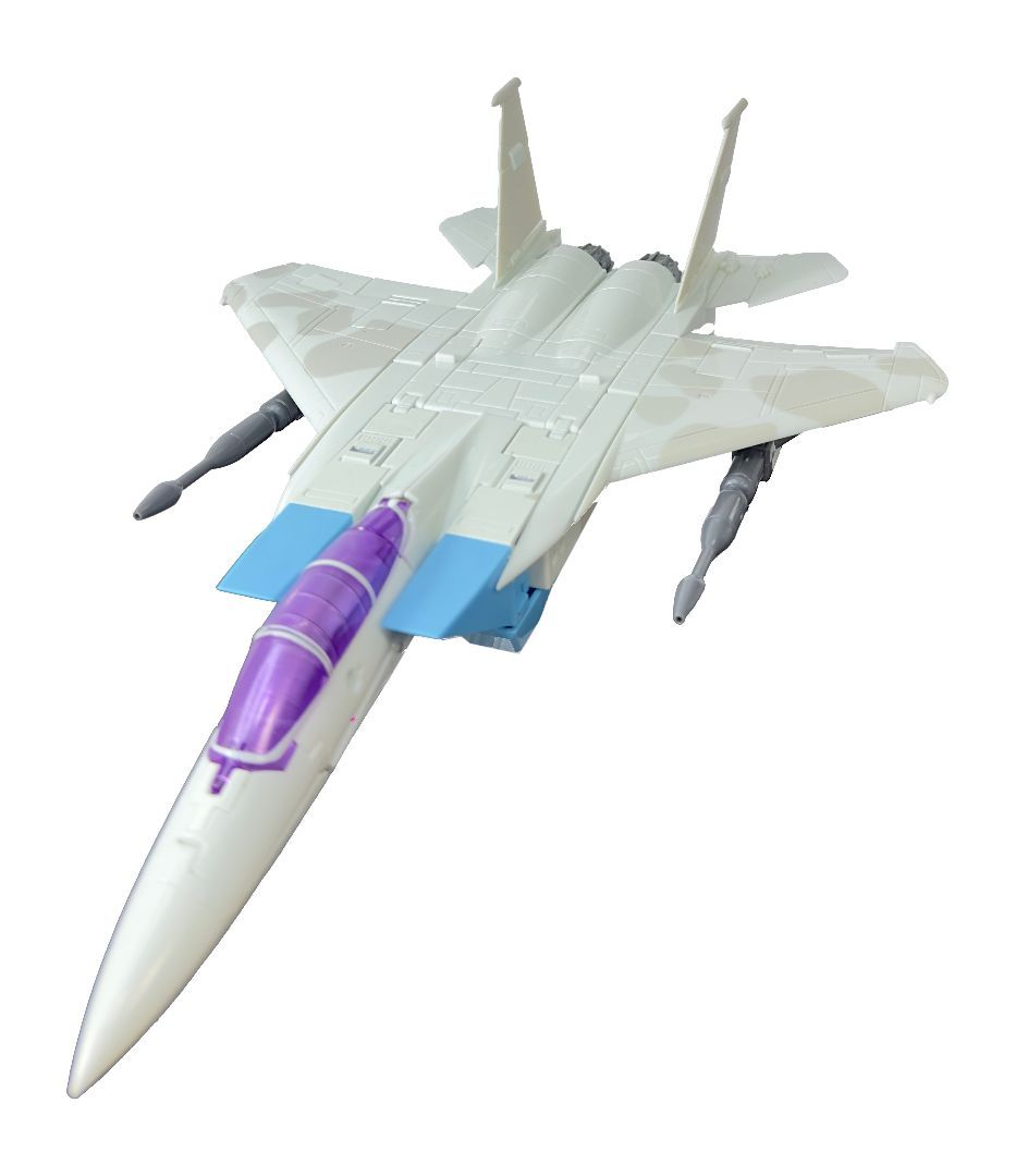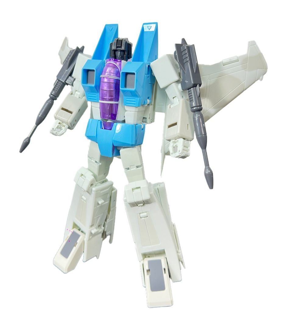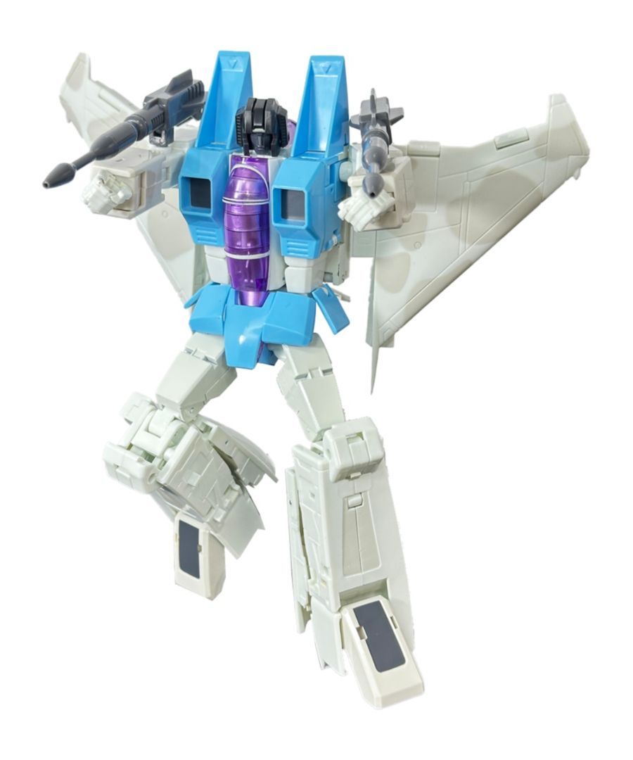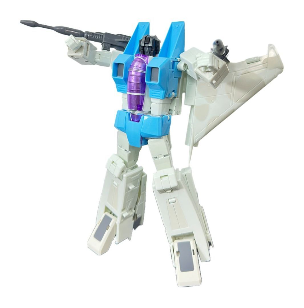 Я очень рад новому MTRC-13 Ice Scream от MakeToys! По сути, это новая цветовая схема для одного из их существующих дизайнов, и это просто фантастика. Он трансформируется из робота в действительно крутой истребитель F15 Eagle. Интересно, что ракетные установки на истребителе превращаются в эти потрясающие пушки нулевого луча, когда он находится в режиме робота. Цвета – это то, что меня действительно зацепило – в основном серый, как белый камуфляж, с поразительным синим торсом и почти кристаллическим фиолетовым цветом для груди, которая является носовым обтекателем истребителя. Он мне очень напоминает созданного фанатами персонажа Ice Storm, Seekera с похожими белыми и синими цветами. Хотя Hasbro и Takara Tomy никогда официально не выпускали Seekera в этих цветах, здорово увидеть другую интерпретацию классической формы Starscream – это одна из многих перекрасок, и я только за!