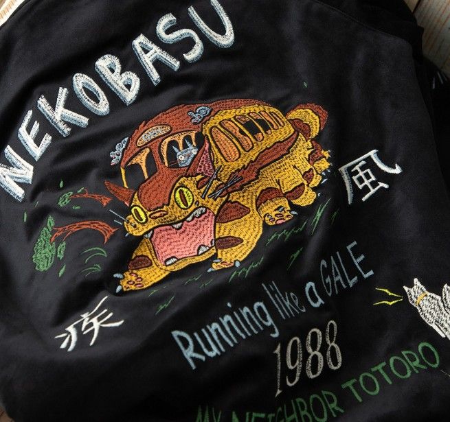 Начать разбиратьсяКуртки сукаджан – это японская интерпретация классической военной куртки-бомбера. Ghibli выпустила несколько таких курток в последнее время, и они известны своей красивой, детализированной вышивкой и винтажным стилем. Эта конкретная куртка отличается изображением Котобуса, мчащегося по спине, под его именем, написанным как на английском, так и на японском языке, а также слоганом ‘running like a gale’. Она также включает в себя вышивку из фильма My Neighbor Totoro и год его выпуска, 1988.