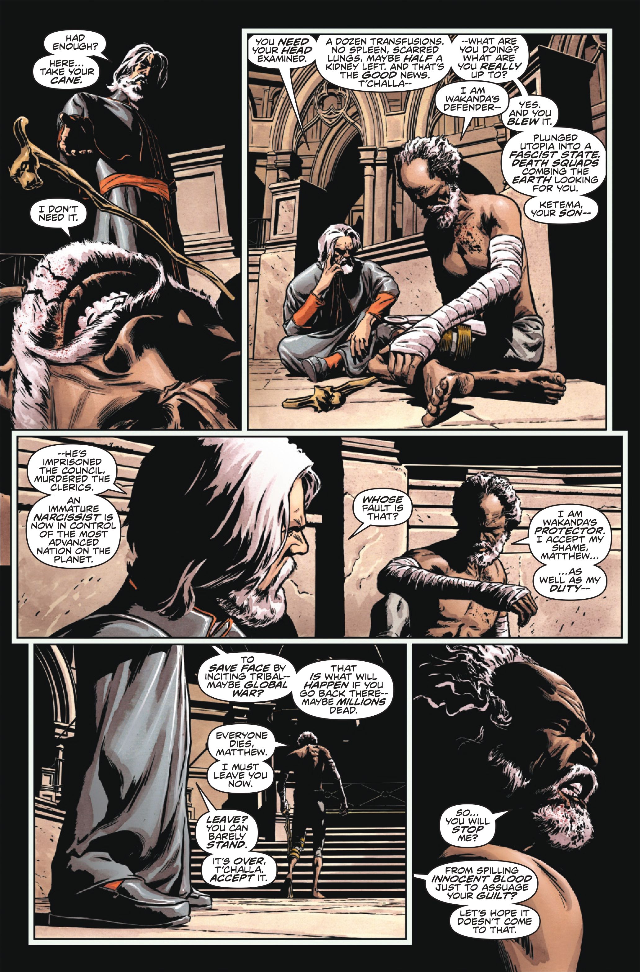 Т’Чалла встречается с опытным Мэттом Мердоком, который предупреждает его, что органы, поддерживающие его в живых, не прослужат долго. Мэтт также критикует Т’Чаллу за то, что он позволил своему сыну нанести столько ущерба Ваканде без вмешательства.