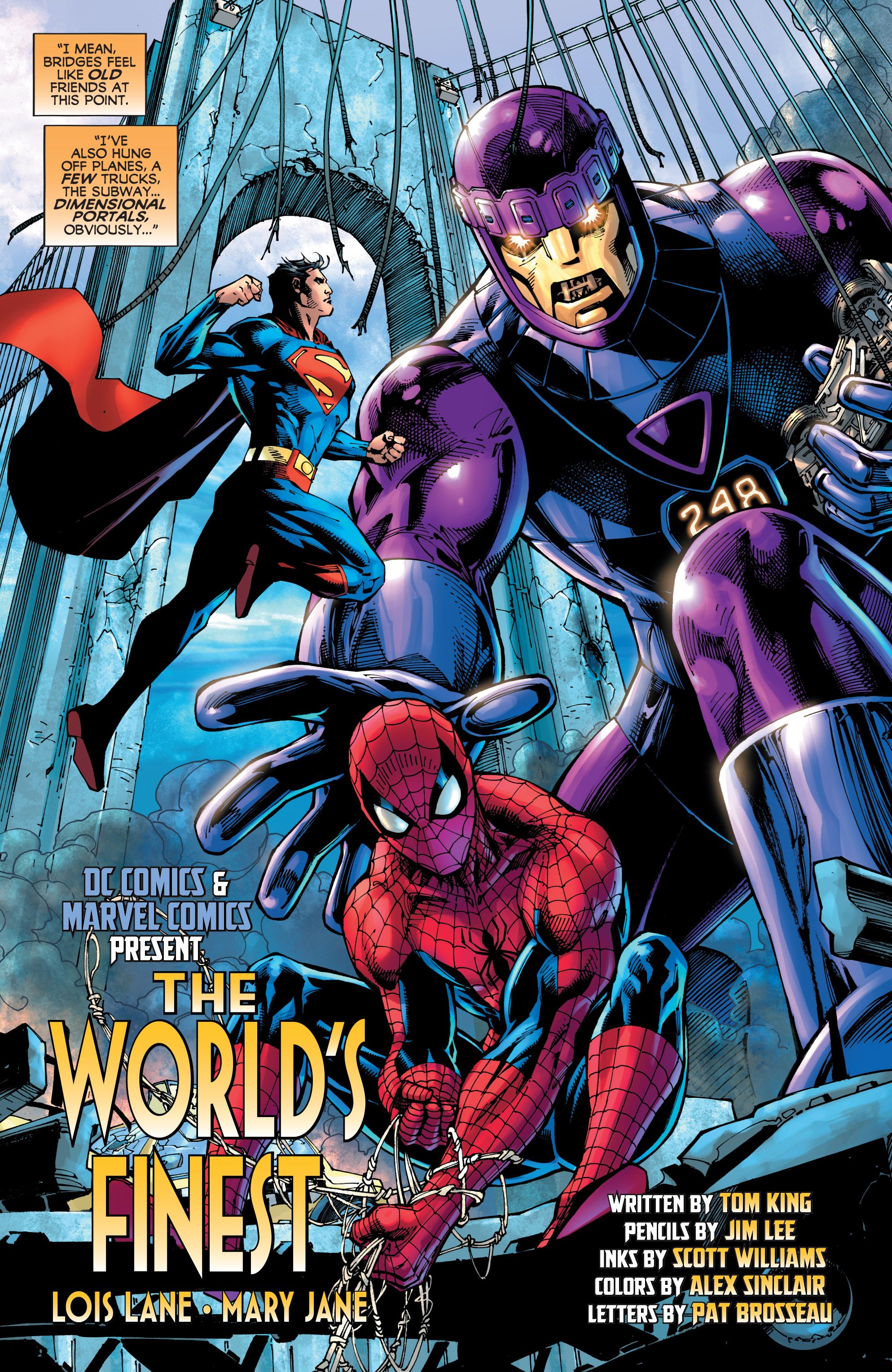 «Лучшие из лучших», созданный Томом Кингом, Джимом Ли, Скоттом Уильямсом, Алексом Синклером и Пэтом Броссо, представляет собой очаровательный союз между Мэри Джейн Уотсон и Лоис Лейн. Хотя в истории есть несколько забавных моментов – некоторые более удачные, чем другие (шутка о Гвен Стейси показалась неуместной) – она также является демонстрацией мастерства Джима Ли. Ему предоставляется возможность нарисовать персонажа, которого поклонники узнают по его работе над X-Men, поскольку Супермен и Человек-паук сражаются с неисправным Sentinel при помощи Мэри Джейн и Лоис.