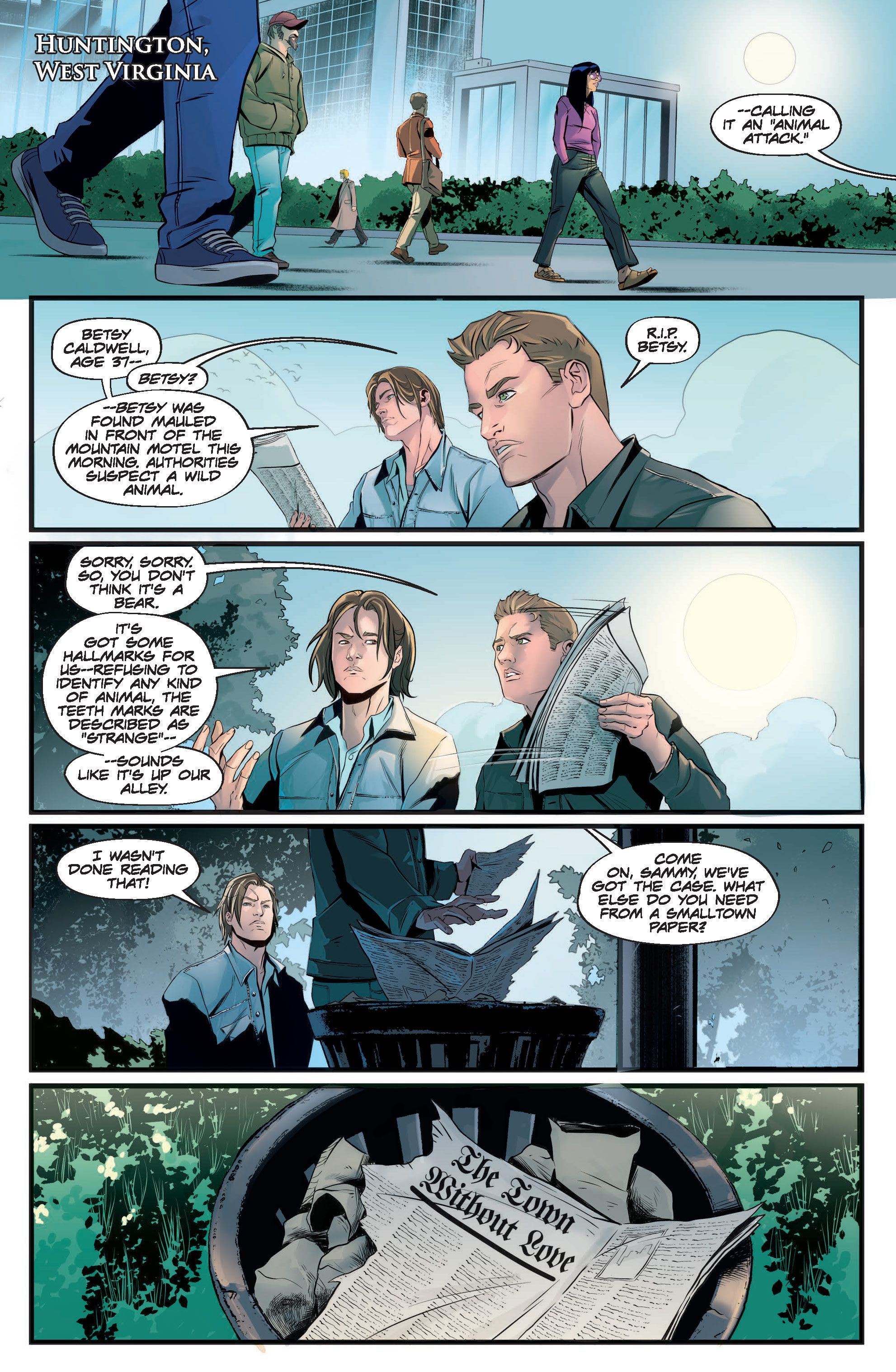 В закусочной женщина явно подслушивает разговор Винчестеров. Она даже следует за ними, когда они уходят, и как раз в тот момент, когда заканчивается превью, она собирается к ним подойти. Она собирается помочь или навредить? Чтобы узнать, вам нужно будет приобрести копию Supernatural: Valentine’s Day Special #1 завтра!