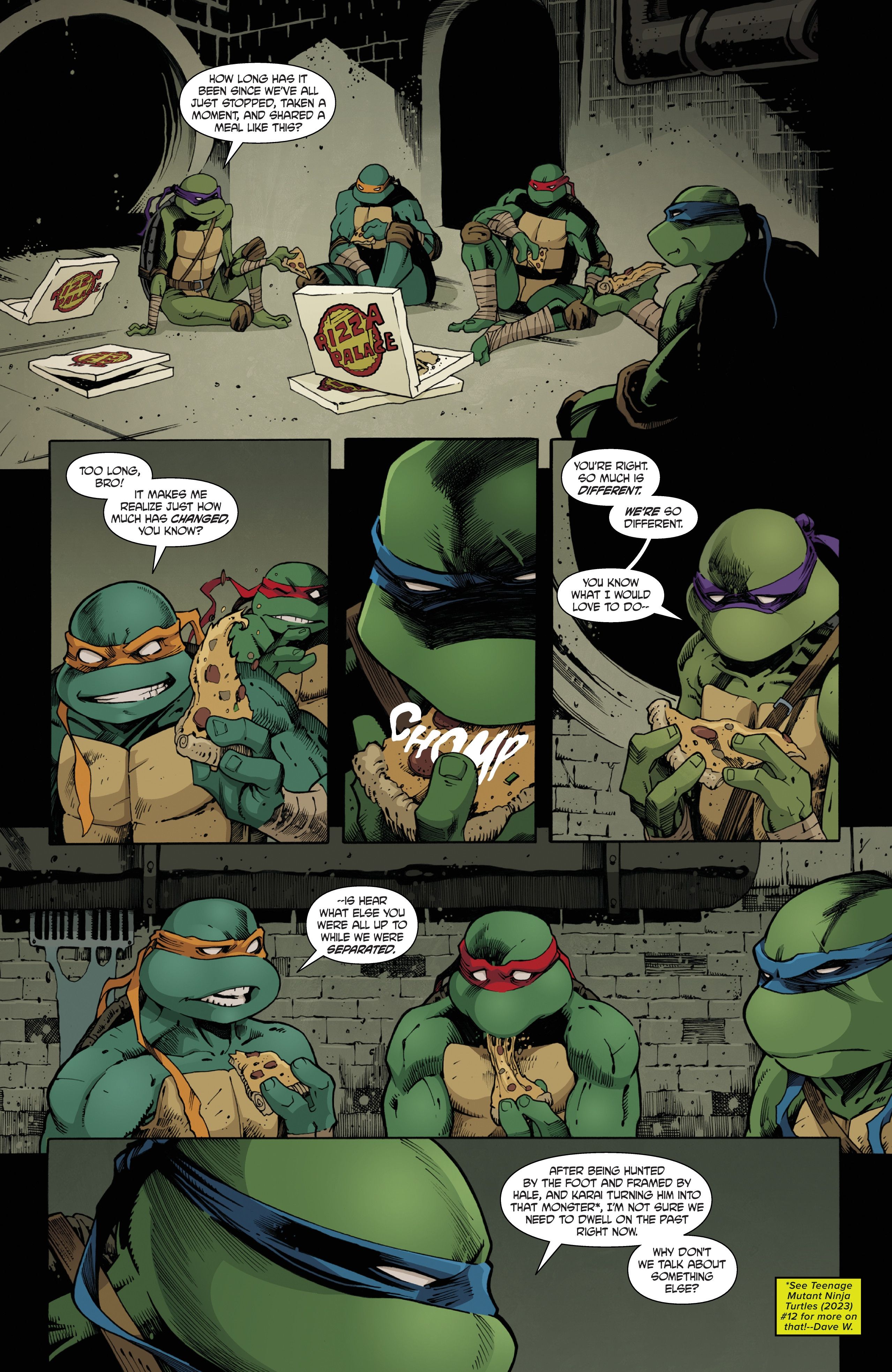 История Леонардо занимает центральное место, подробно описывая секретную миссию по спасению мутанта, чьих братьев убили. Первоначально этот мутант кажется связанным с группой, выступающей против мутантов. Однако Леонардо потрясен, узнав, что этот мутант ответственен за смерть своих братьев и принял антимутантские взгляды, чтобы наживаться на продаже оружия тем, кто хочет навредить другим, похожим на него. Это глубоко тревожная сюжетная линия, эффективно обработанная Портером и Шельфером. Раскраска Ронды Паттисон последовательно хороша на протяжении всего выпуска, но особенно ярко проявляется во время приключения Леонардо, с умелым использованием теней, когда он проникает на вражеский корабль.