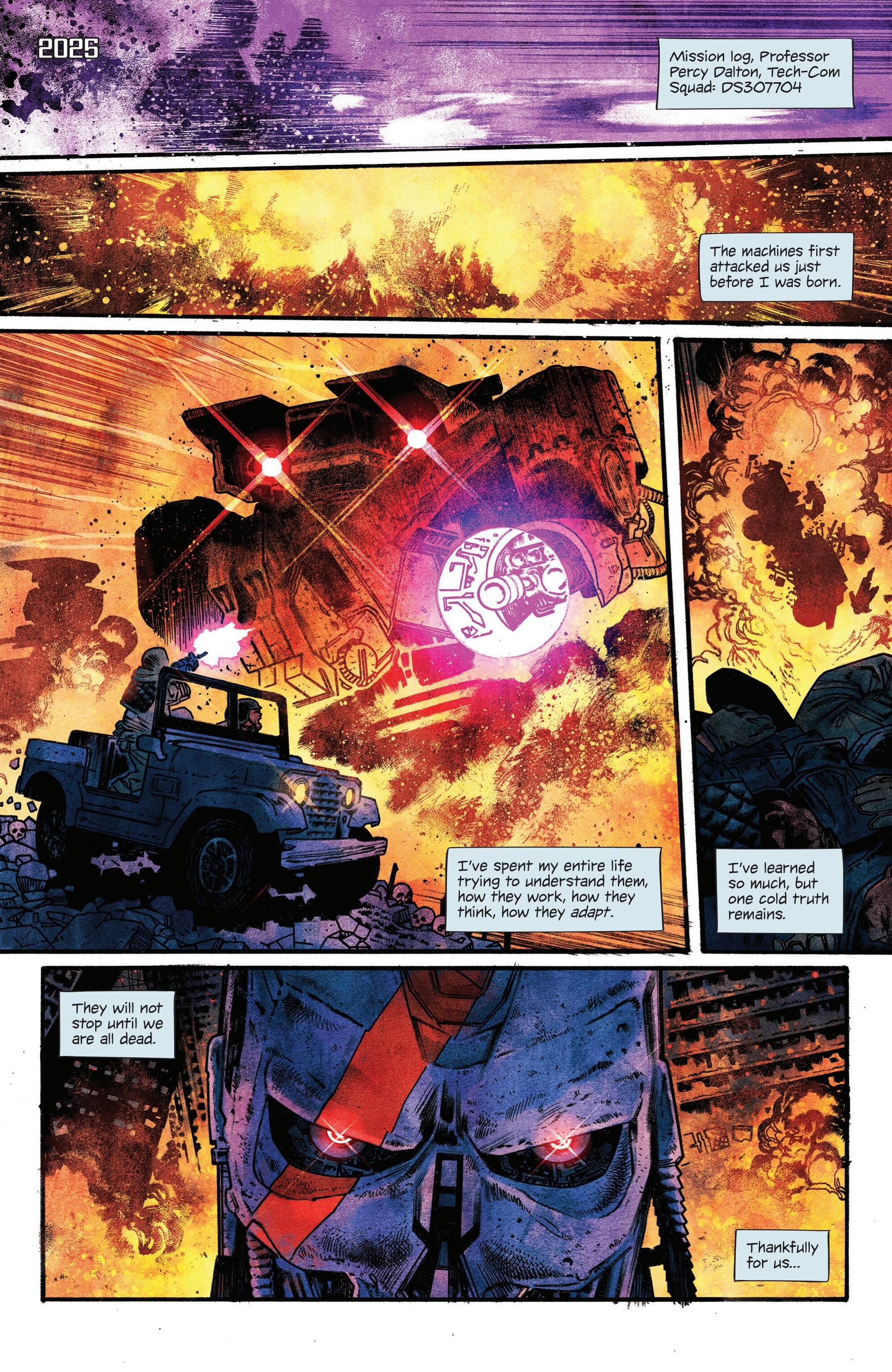 Этот комикс происходит в 2025 году, до событий первого фильма «Терминатор». Это за четыре года до того, как Кайл Риз отправится в прошлое, чтобы защитить Сару Коннор, а также до того, как будет отправлен перепрограммированный Терминатор для защиты юного Джона Коннора. На данный момент концепция перепрограммирования Терминаторов нова, и мы видим, как учёный Перси Далтон экспериментирует с ней в составе команды Tech-Com. Перси, как и многие выжившие, родился после Дня Суда, поэтому он знает только мир, находящийся в состоянии войны с машинами. Несмотря на это, он талантливый программист, который верит в возможность сосуществования людей и машин, и он полон решимости найти способ это реализовать.