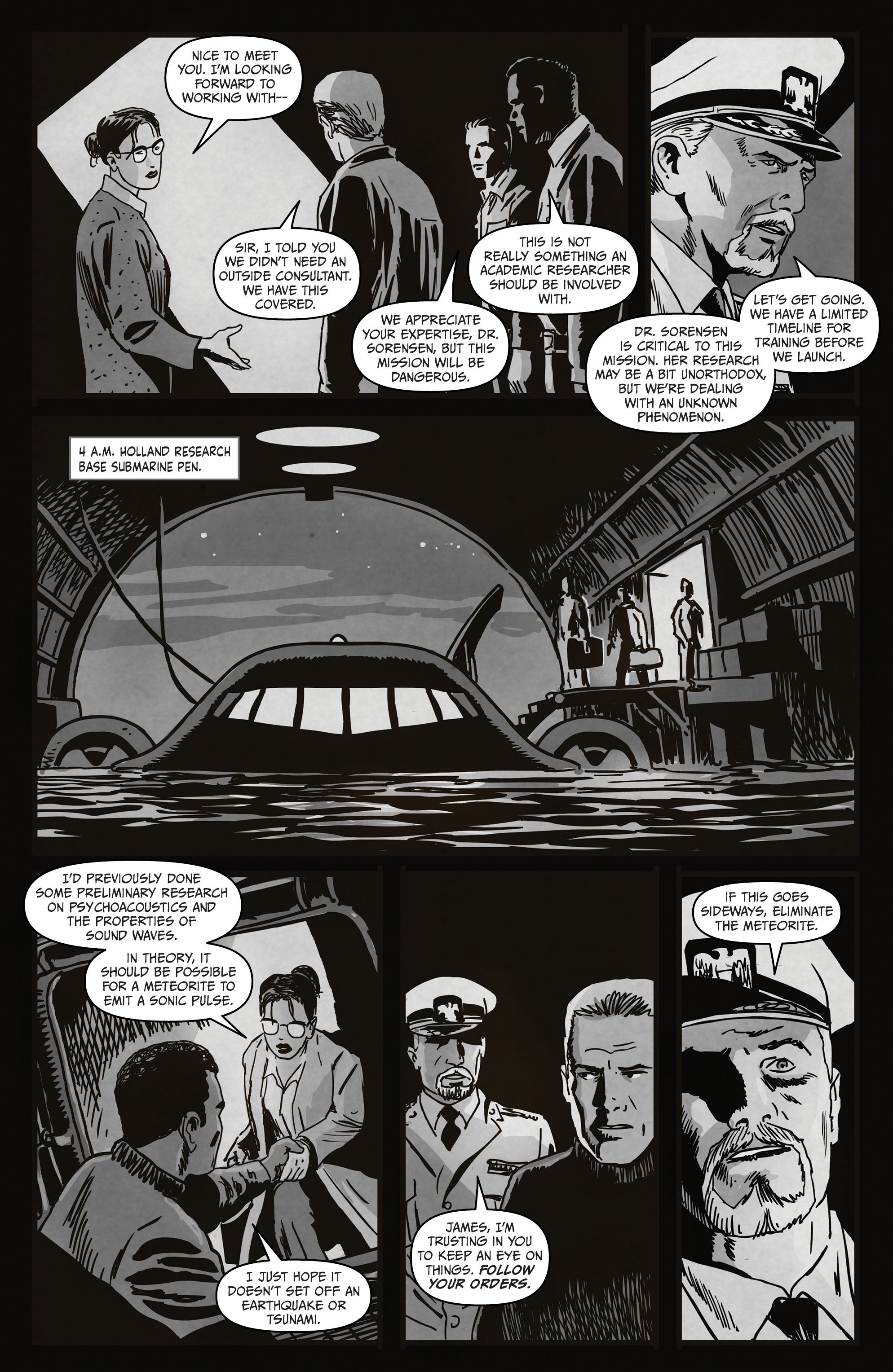 История представляет доктора Эмили Соренсен, талантливого эксперта по акустике, которую привлекает правительство после падения странного метеорита в океан. Этот метеорит излучает необычные звуки, и доктора Соренсен отправляют с военной миссией для расследования. Она сталкивается с некоторым сопротивлением со стороны своих товарищей по команде, которые не в восторге от того, что она присоединяется к ним, когда они отправляются к месту падения.