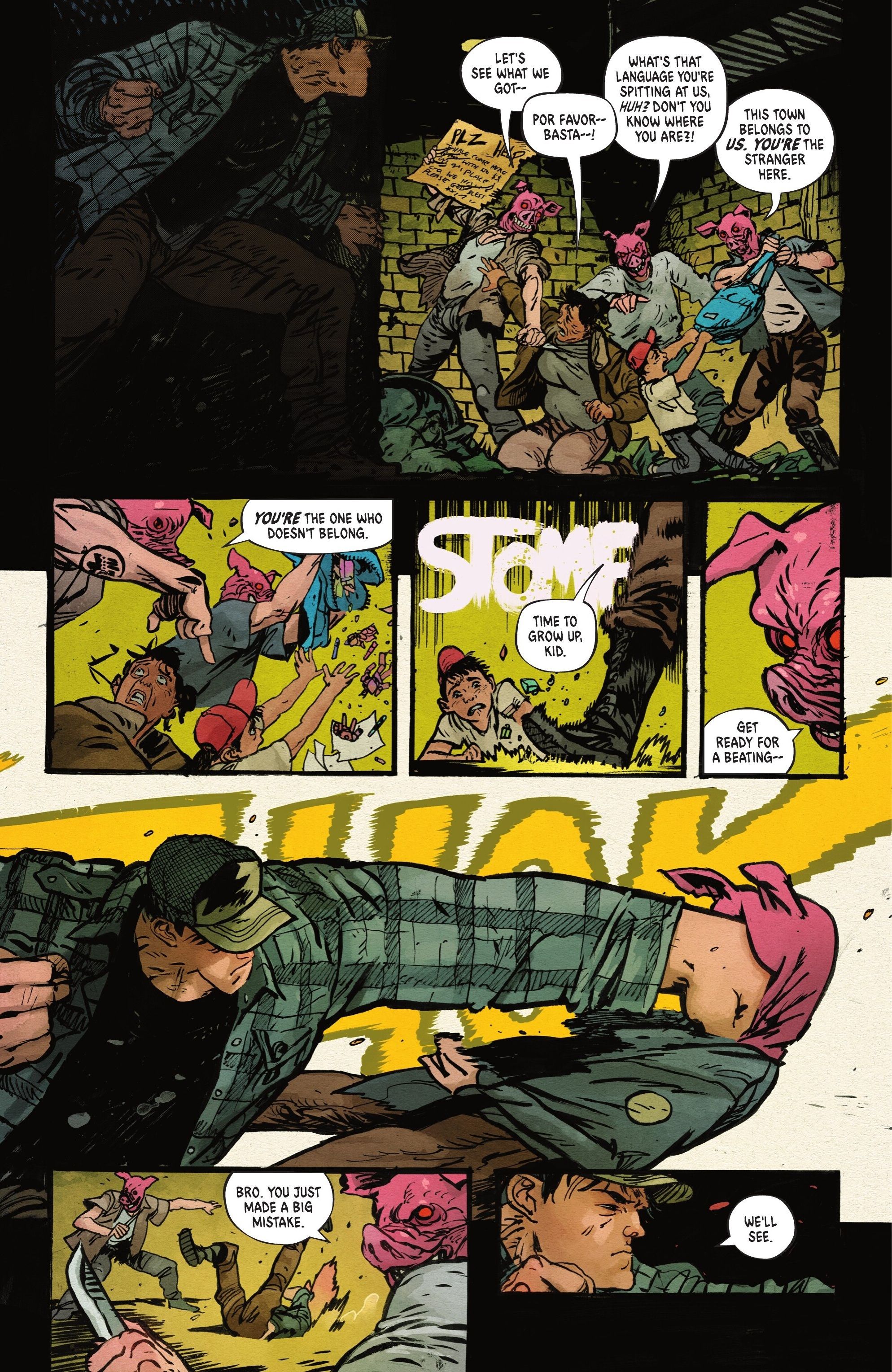 Брюс немедленно вмешивается, когда становится свидетелем нападения на мигрантов, несмотря на то, что одет как гражданское лицо и пытается избежать внимания. В начале своей карьеры Дэниел Уоррен Джонсон получил значительное признание за особенно впечатляющий комикс – уникальную, философскую трактовку рестлинга, который блестяще передавал физические ощущения от приёмов рестлинга так, как я ещё не видел ни в одном другом комиксе.