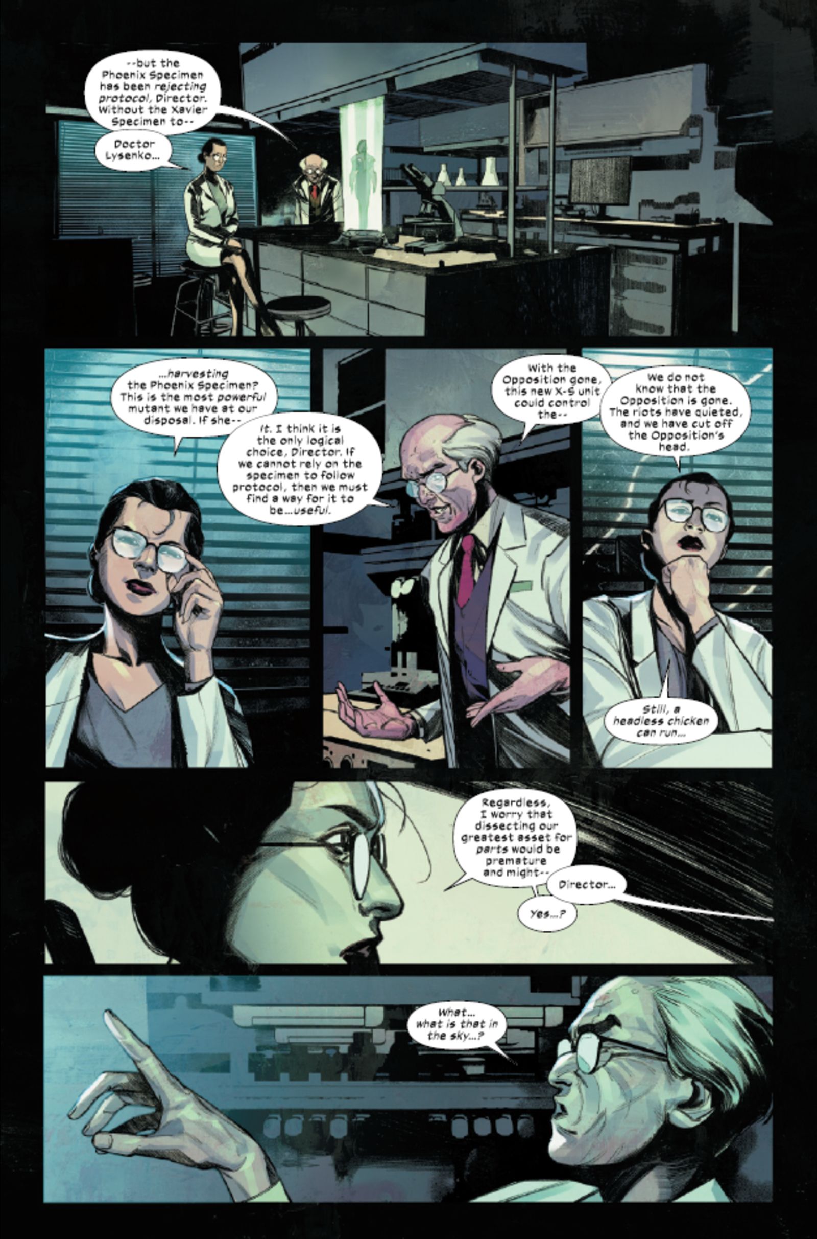 После захвата Жан находилась в коме и получала лишь минимальную поддержку жизнедеятельности, чтобы оставаться в живых. Евразийская Республика использовала её, а также то, что осталось от сознания Чарльза Ксавьера, для контроля над другими могущественными личностями, включая Зимнего Солдата, который на самом деле является Росомахой, и для поддержания своего господства.