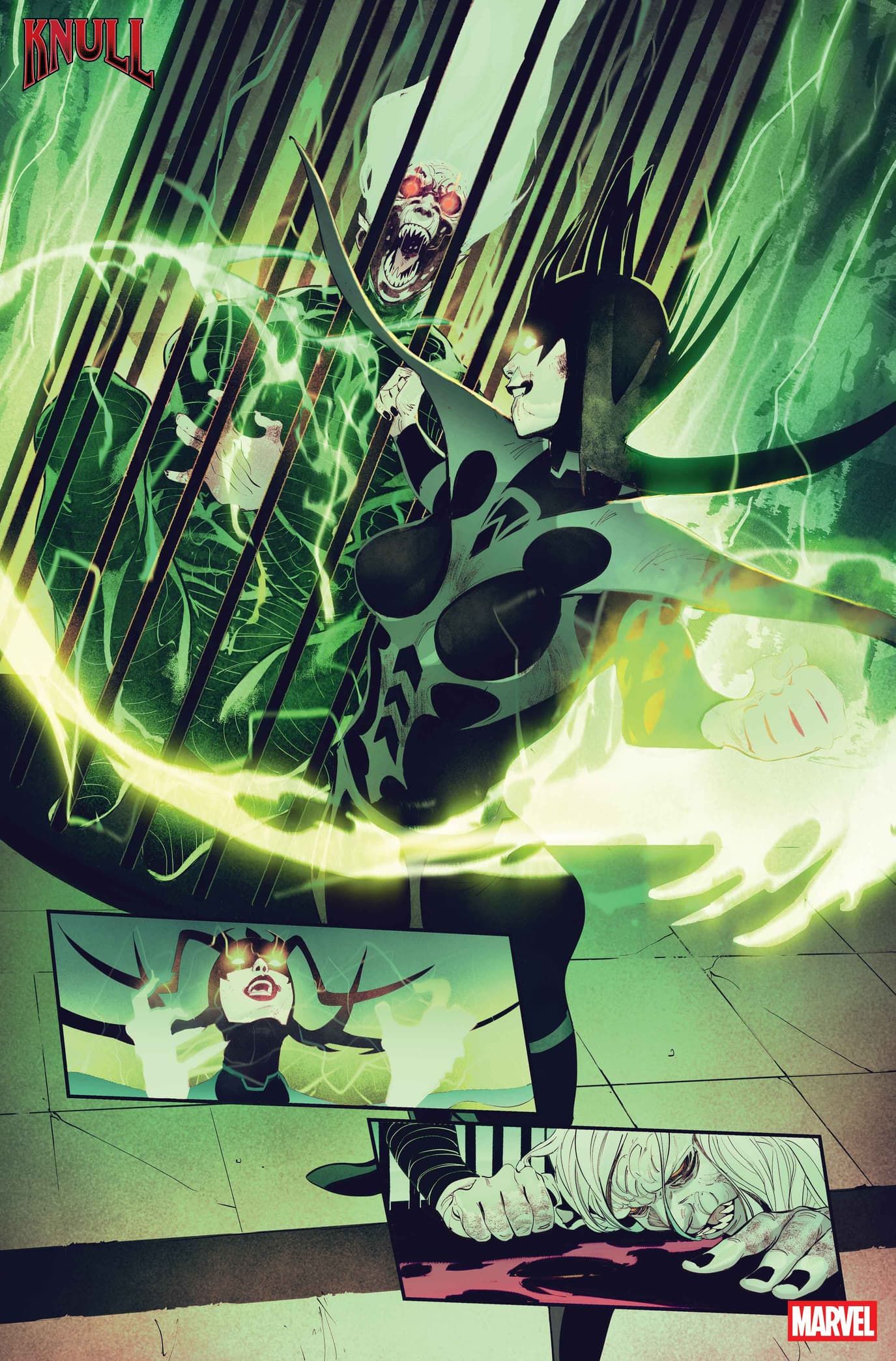 Начать разбиратьсяMarvel Comics только что выпустила превью предстоящей серии Knull, давая фанатам первый взгляд на возвращение оригинального Короля в Черном. История, написанная Элом Юингом и Томом Вальцем с рисунками Хуанана Рамиреса, начинается сразу после Venom #250. Knull все еще заключен в тюрьму Хелой, Богиней Смерти, в Асгарде. Несмотря на то, что Хела украла часть его силы, Knull все еще представляет собой опасную угрозу и умудряется вырваться из-под ее контроля, как показано на изображениях превью ниже.
