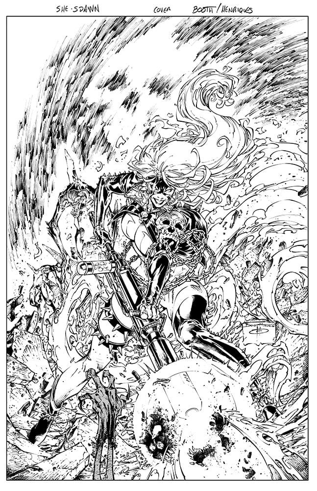 Я был невероятно рад, что меня лично выбрал один из основателей Image Comics для работы над проектом в его творческом пространстве. Он увидел некоторые диалоги, которые я написал для книги DC, и ему понравилось, что было очень приятно. Вскоре после этого я оказался в глубоких разговорах с Тоддом Макфарлейном – не только о She-Spawn, но и о его любви к созданию историй и развитию персонажей. Каждый разговор казался учебным опытом. Он искренне интересовался моим творческим процессом, и это было одним из самых позитивных и совместных знакомств с издателем, которые я когда-либо испытывал.