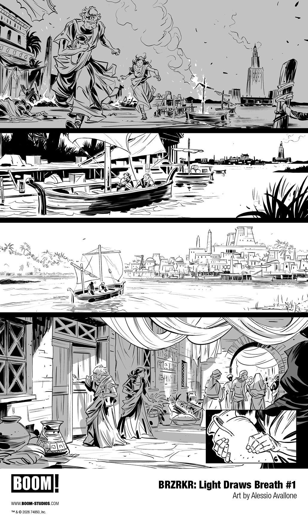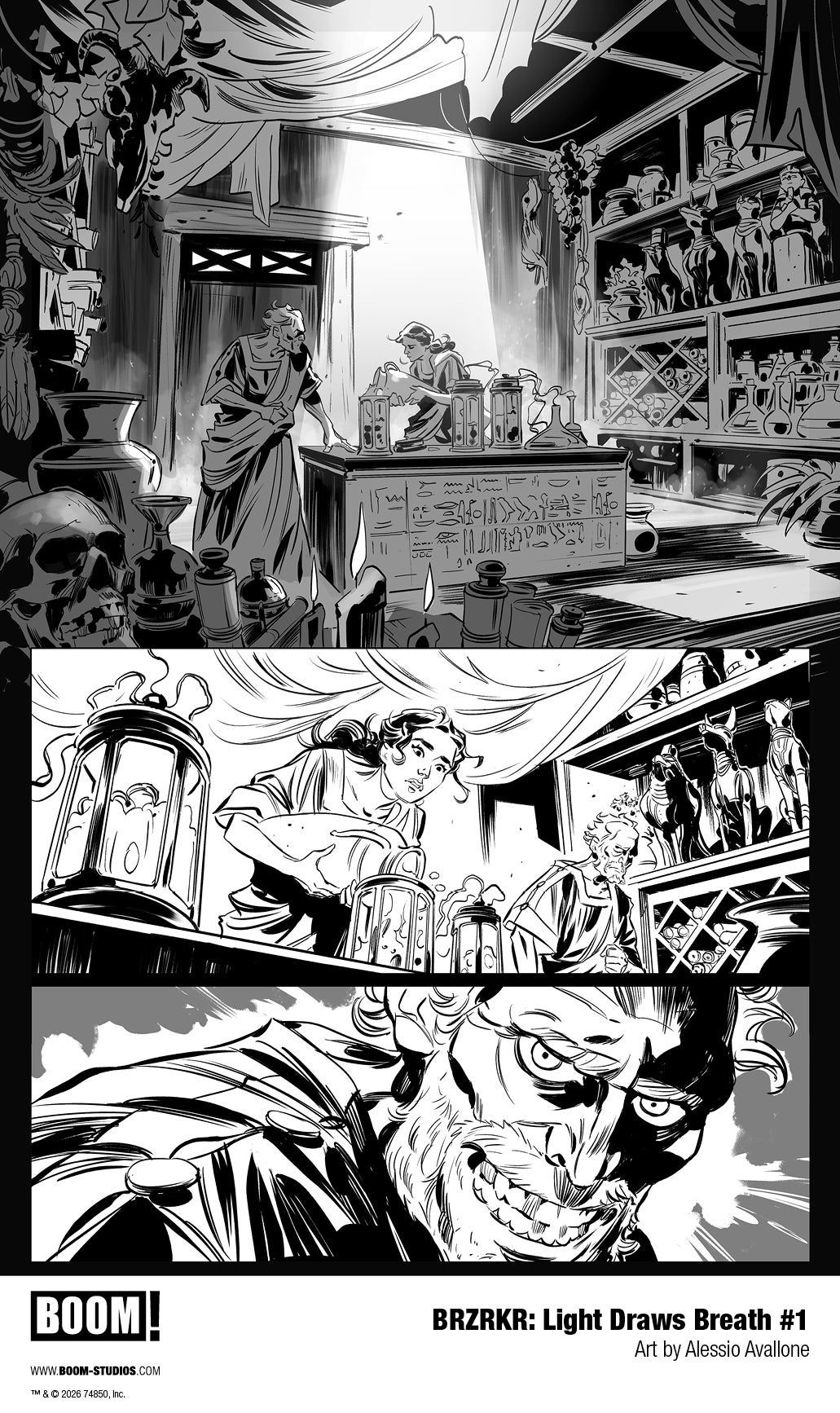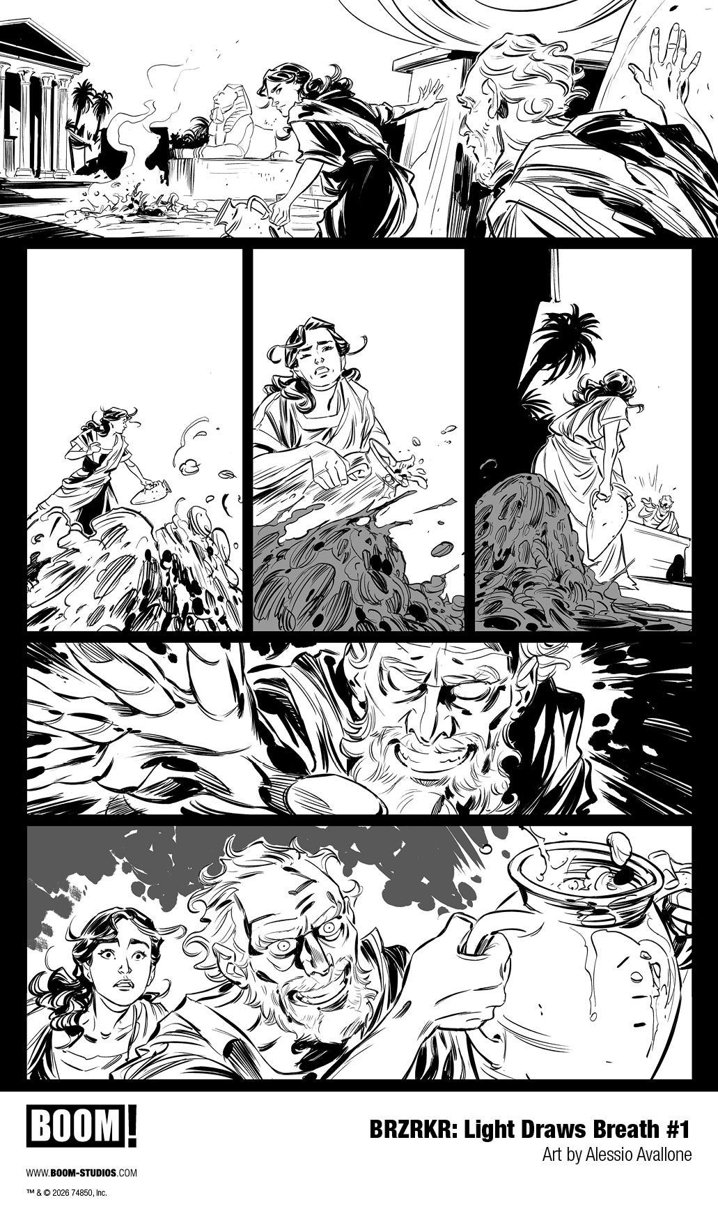 Предварительный просмотр Light Draws Breath #1 показывает, что приключения B в бронзовом веке будут полны опасностей, когда он выйдет в мае. На обложке изображен воин, сражающийся с ужасающими существами, а концепт-арт Алессио Авалоне предполагает, что может произойти неожиданное изменение. Ранние, неокрашенные страницы также намекают на надвигающуюся тьму в древнем сеттинге истории.